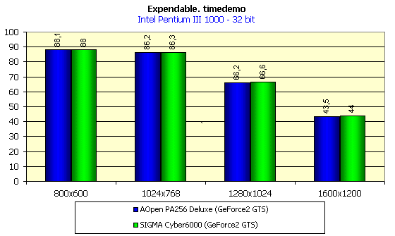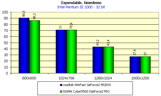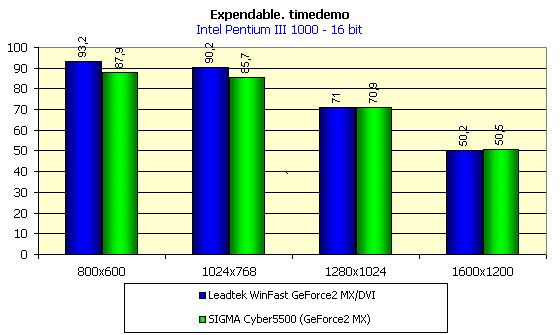 - Rage Expendable (timedemo) — игровой тест, демонстрирующий работу платы в Direct3D в режиме мультитекстурирования.