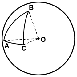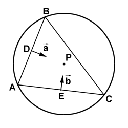 Для этого, рассмотрим плоскость, в которой лежат все три вершины A, B, C треугольника. Пересечение сферы и плоскости дает окружность, которая является описанной вокруг треугольника окружностью. Ее центр P лежит в точке пересечения срединных перпендикуляров и может быть найден по следующей формуле: