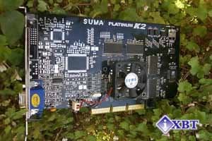 Карта SUMA Platinum K2 имеет AGP x2/x4 интерфейс, 32 Мб SDR SDRAM памяти, размещенной в 4-х микросхемах на лицевой стороне PCB.