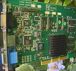 Эта карта имеет AGP 2x (подчеркиваю, что не 4x) конструктив, 32 Мбайт SDRAM 5.5 ns памяти, расположенной по обеим сторонам платы.