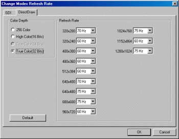 По умолчанию, карта работает на более низких частотах, чем принято для nVidia Riva TNT2, а именно 100 МГц по чипсету и 110 МГц по памяти. Как можно видеть, это самая медленная из всех TNT2-карт, рассматриваемых в этом обзоре. Но, даже несмотря на это, первые тесты показали, что и на таких частотах плата подвисает, поэтому принято решение тестировать ее на 100/100 МГц. Должны заметить, что ни на коробке, ни в документации, ни в драйверах не было сказано, что чипсет работает не на 125/150 МГц, а всего лишь на 100/110. Любопытно, откуда PowerColor достала такие чипсеты nVidia Riva TNT2, которые перегреваются на штатных частотах. Кстати, рассматриваемая нами карта — это уже второй экземпляр, первый Sniper2 таким же образом не работал на 125/150 МГц. Но тогда, решив, что нам попался просто бракованный экземпляр, мы поменяли плату. Теперь же видим, что это не брак, а сознательный выпуск видеокарт на более низкочастотных чипах.