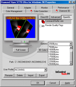 BIOS — версии 202C4A02, драйвера, поставляемые с картой, базируются на референс 1.30. Остановимся на драйверах. Выпуск новых видеокарт этой весной фирма Diamond ознаменовала тем, что с платами поставляется новая версия утилит InControls