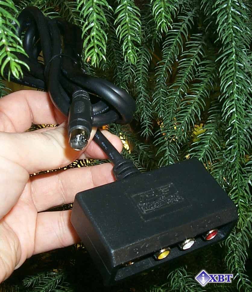 - Довольно длинный шнур входных разъемов TV-in для подключения внешних устройств с удобной колодкой и "липучкой" позволяет расположить его прямо на рабочем столе возле монитора, что представляется мне очень удобным, если учесть мои частые перекоммутации оборудования.