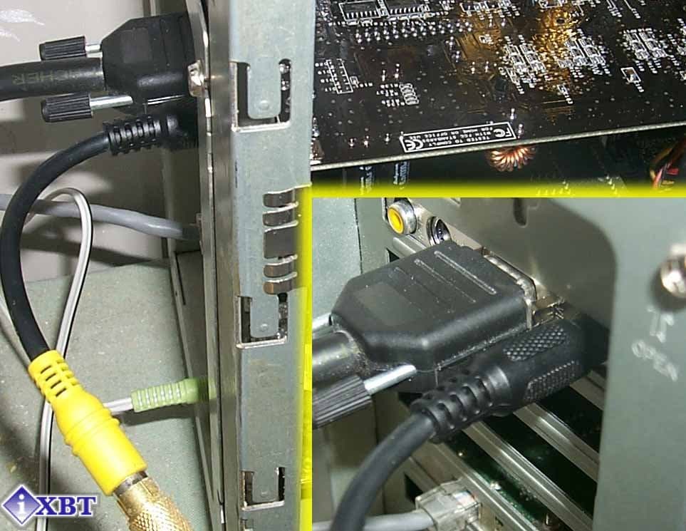На этой же фотографии можно увидеть джампер, отвечающий за выбор формата сигнала TV-out (NTSC/PAL). Впрочем, выбор можно осуществить и через настройки в драйверах.