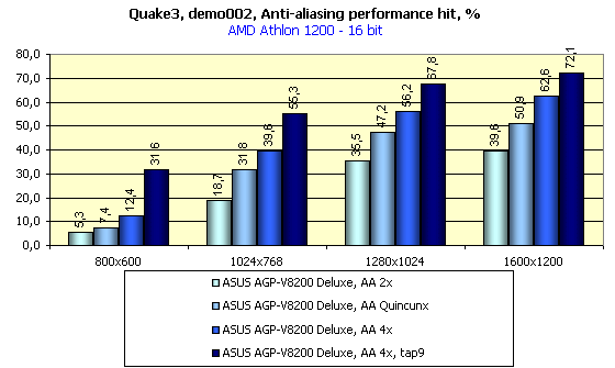 Подводя итоги рассмотрению АА, просто ради интереса приведу цифры падения производительности при работе АА в той или иной степени.