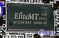 Я уже отмечал, что ныне самая быстрая память (среди серийно выпускаемых) принадлежит фирме Elite Semiconductor. Ниже, при описании разгона, мы вернемся к этой теме.