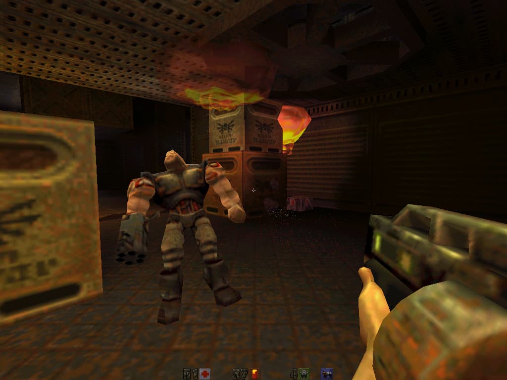 Нетрудно заметить высокое качество изображения. Картинка с Riva128 в подметки не годится тому, что можно наблюдать на скриншоте. Правда, глюки все же проскакивали и на Riva TNT. Иногда, при резких движениях, текстуры как бы не успевали переместиться и раздваивались, при переключении разрешений с 800х600 на 1024х768 и обратно иногда возникали горизонтальные полосы, которые делили экран на две части: сверху каркасы объектов без текстур, внизу — все правильно. Но эти проблемы появлялись лишь изредка и легко устранялись, поэтому на общую "играбельность" они мало оказывают влияние. Есть все основания предполагать, что с выходом новых версий драйверов, все неприятности исчезнут. Ну или почти все.