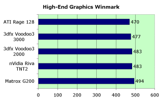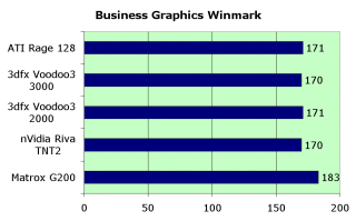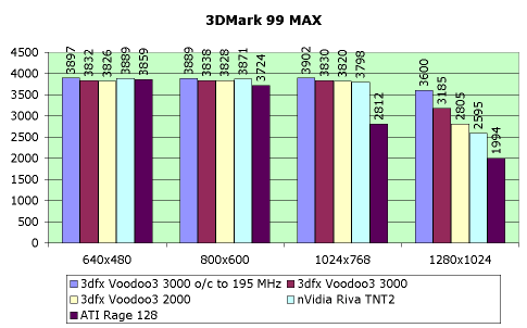 Тем не менее, мы повторим наш вердикт о том, что Voodoo3 по качеству и скорости 2D как игровая видеокарта практически лидирует среди аналогов (за исключением Matrox G200, который по скорости все еще впереди).