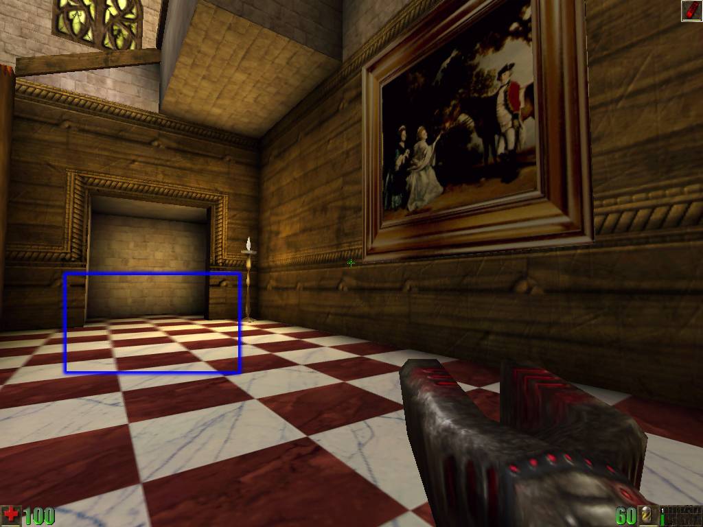 Обратите внимание на люстру, висящую в центре зала. Ниже крупным планом представлена часть этой люстры в версии Unreal 2.20 Direct3D (справа) и Unreal 2.22r Glide (слева):