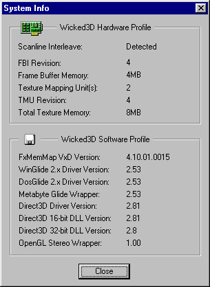 - Glide и OpenGL: поскольку базис для OpenGL у Voodoo² находится в Glide, то по сути, речь идет об оптимизации путей выполнения тех или иных операций при работе с библиотекой Glide. Там были найдены решения, "укорачивающие" эти пути, вследствие чего работа программ под Glide и OpenGL несколько убыстряется.