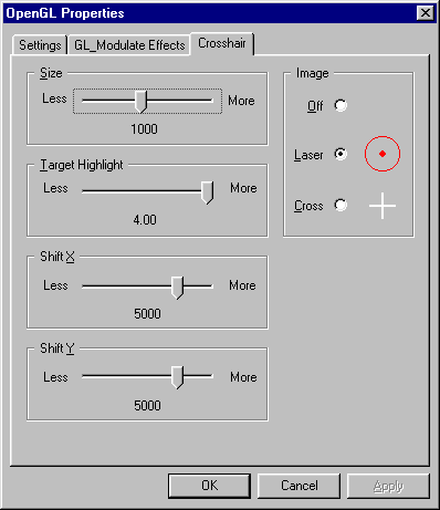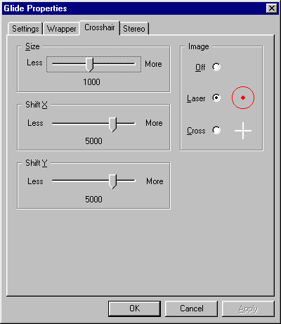 - и подобная Glide-настройкам, установка режима "лазерного" прицела: