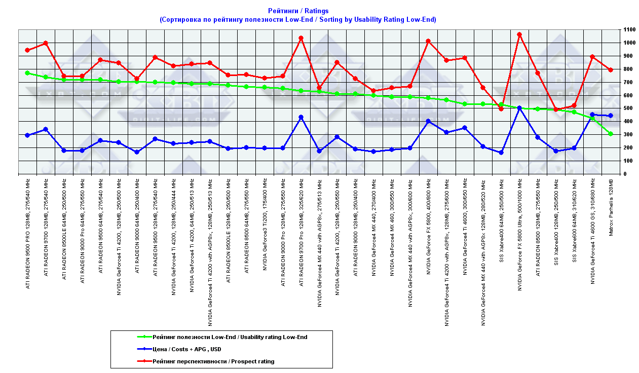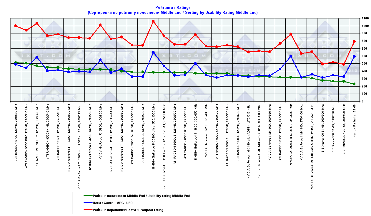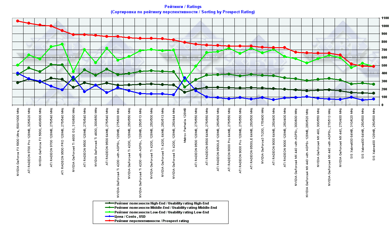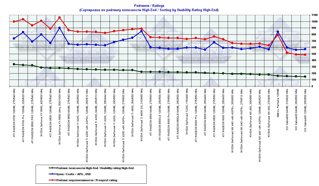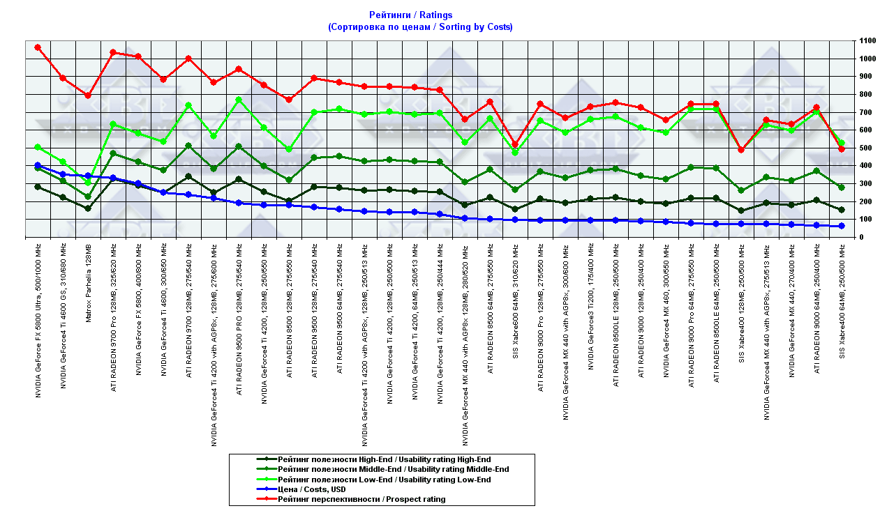 - = 400 — GeForce2 MX (не учитывается, поскольку карты, снабженные TwinView, имеют бОльшую стоимость);