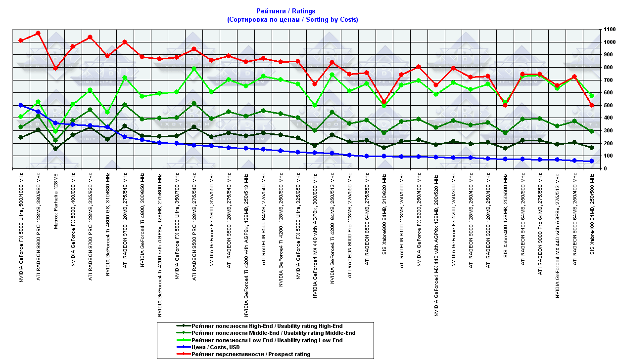 - = 400 — GeForce2 MX (не учитывается, поскольку карты, снабженные TwinView, имеют бОльшую стоимость);