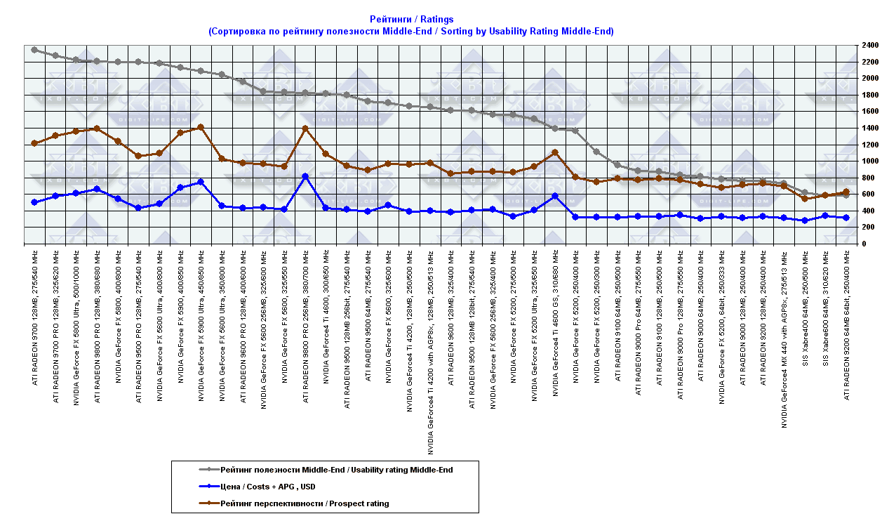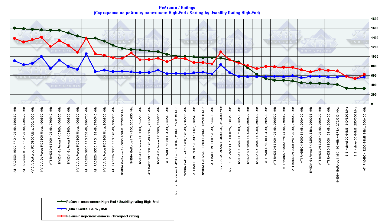 - = 700 — Parhelia, RADEON 9700/9800, GeForceFX;
