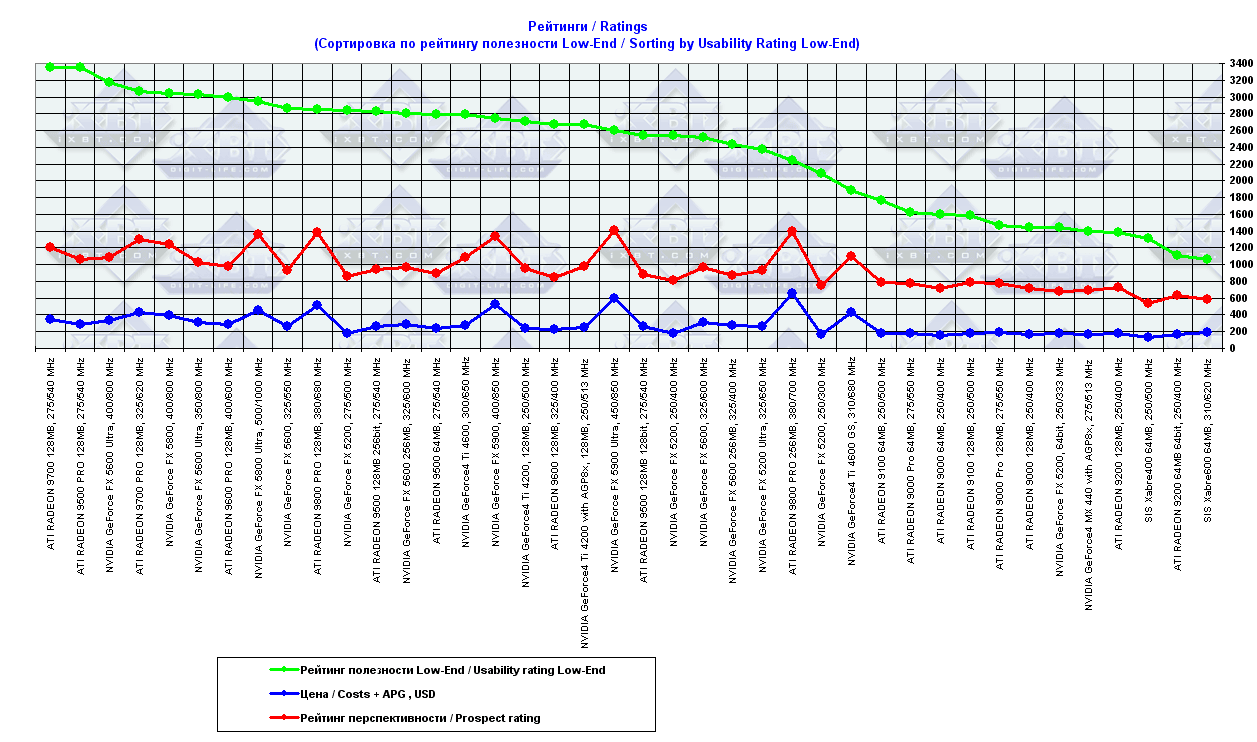 - = 400 — GeForce2 MX (не учитывается, поскольку карты, снабженные TwinView, имеют бОльшую стоимость);