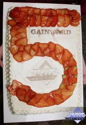 В заключение этой вводной торжественной части хочется выразить благодарность всем, кто поздравил нас с этим юбилеем, особенно сотрудников компании Gainward, преподнесших великолепный торт (на снимке специалист по маркетингу Михаил Прошлецов (он же Mih@il в форуме iXBT), видеоролик (20 сек, 2МБ)):