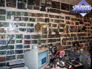 Кстати, это не просто музей в прямом понимании смысла, то есть на этой стене не только видеокарты, которые уже морально устарели или редкие экземпляры, но и часть плат, ныне используемых в проекте. Остальная часть, имеющая объемистые кулеры, мешающие размещению их на стенке, обитает прямо над стендами :-)