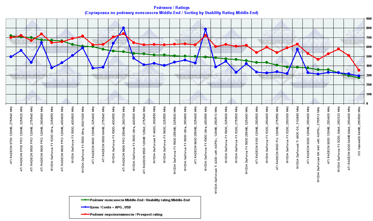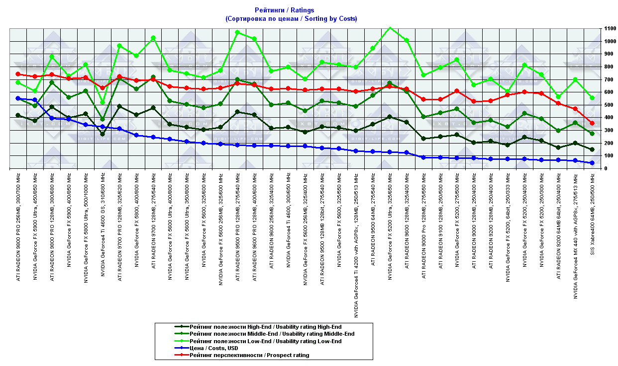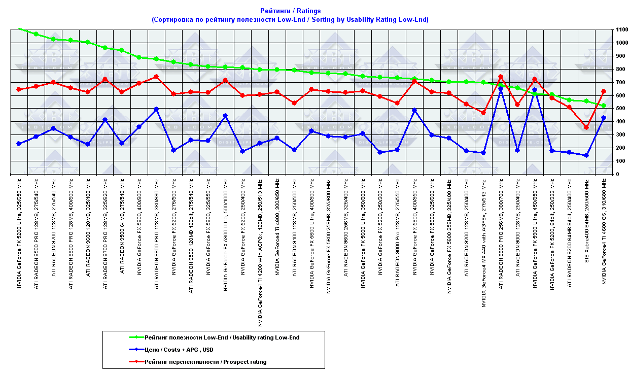 - = 400 — GeForce2 MX (не учитывается, поскольку карты, снабженные TwinView, имеют бОльшую стоимость);