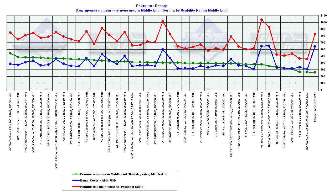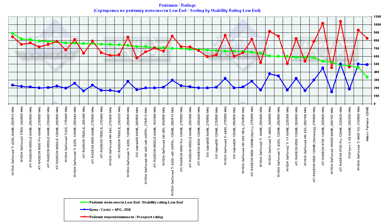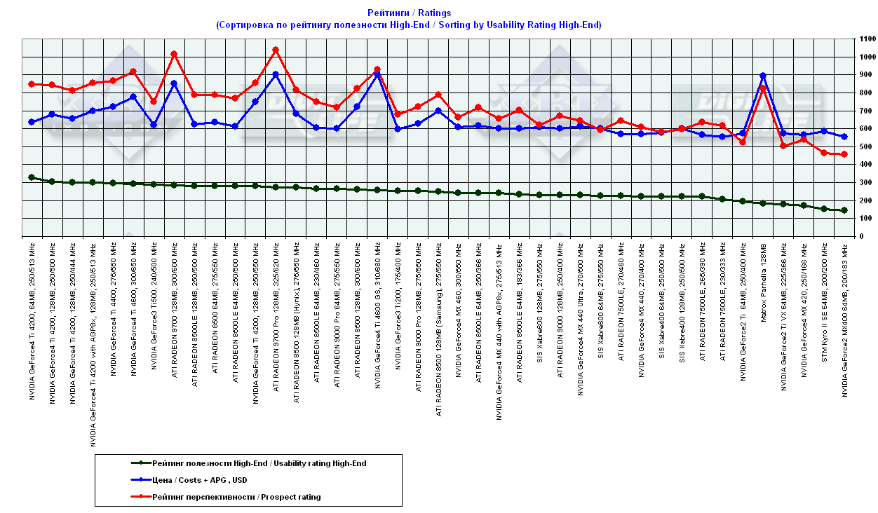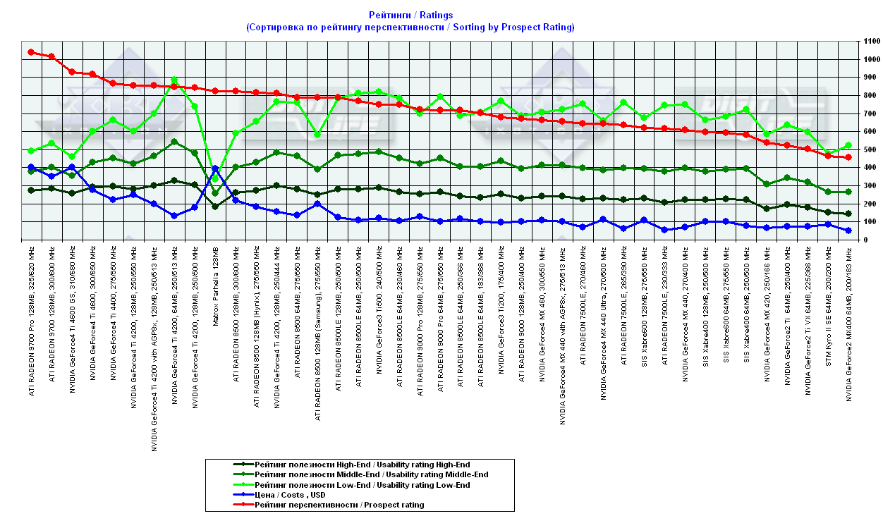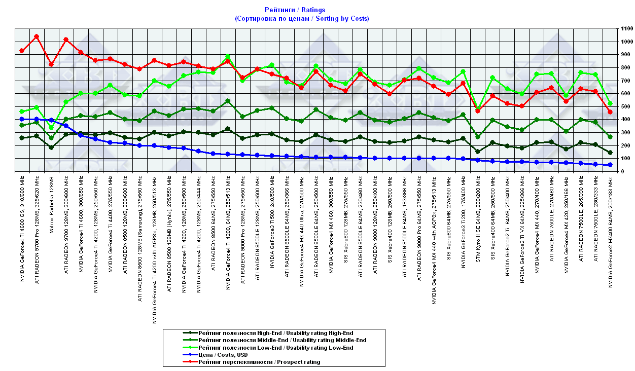 - = 400 — GeForce2 MX (не учитывается, поскольку карты, снабженные TwinView, имеют бОльшую стоимость);