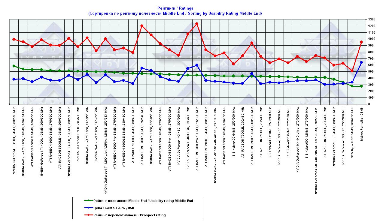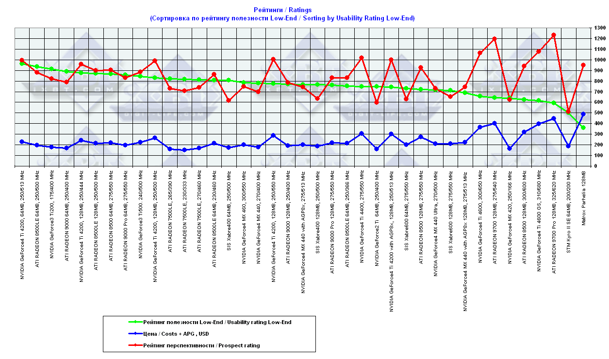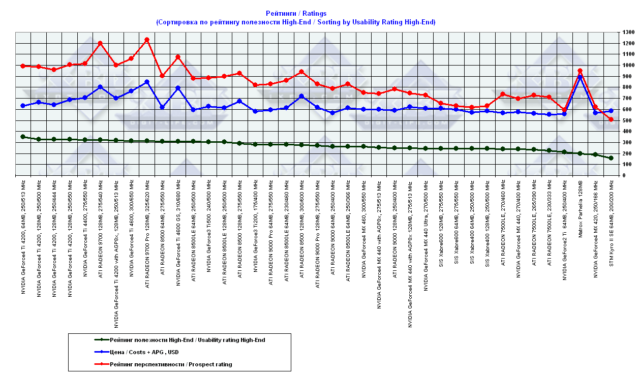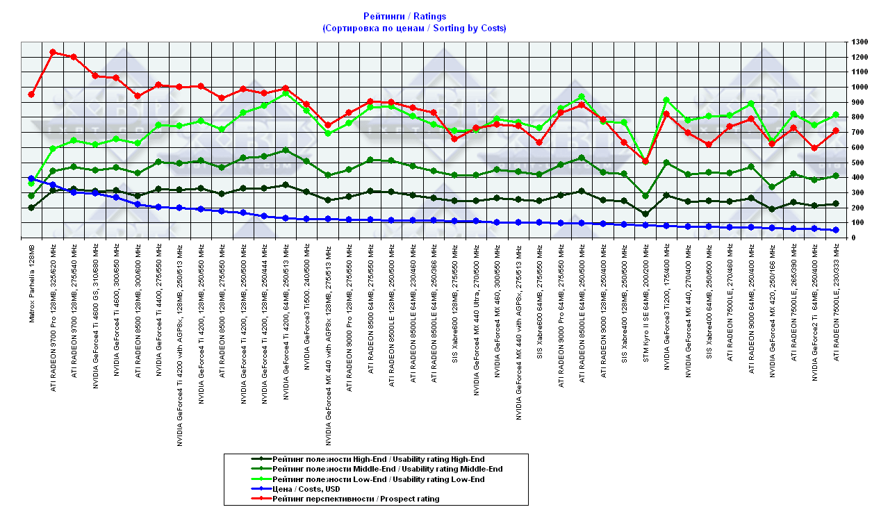 - = 400 — GeForce2 MX (не учитывается, поскольку карты, снабженные TwinView, имеют бОльшую стоимость);