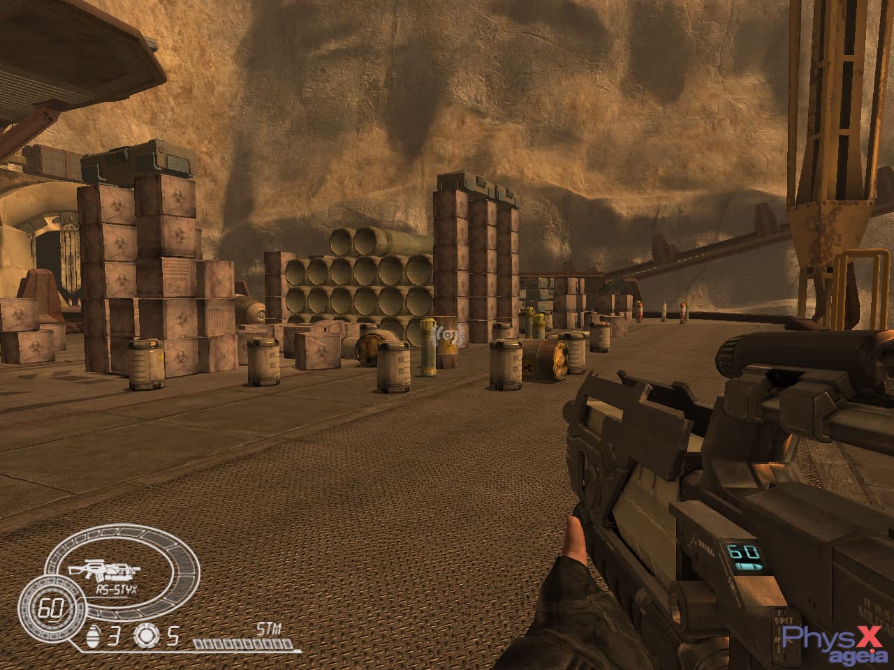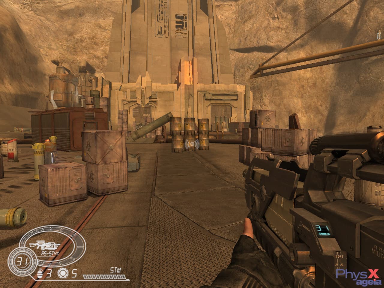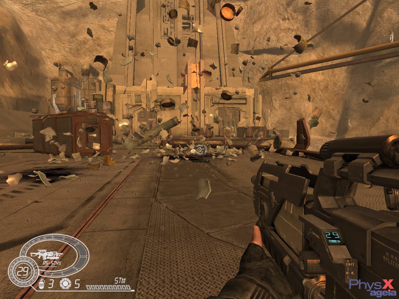 На примере CellFactor хорошо прослеживается практическое доказательство нашего теоретического предположения о том, что PPU — это в первую очередь количественное улучшение уже виденных нами физических эффектов. В 2003-м году в Max Payne 2 с полок падало на пол по 5 коробок, а тут — летает по 500 ящиков одновременно.