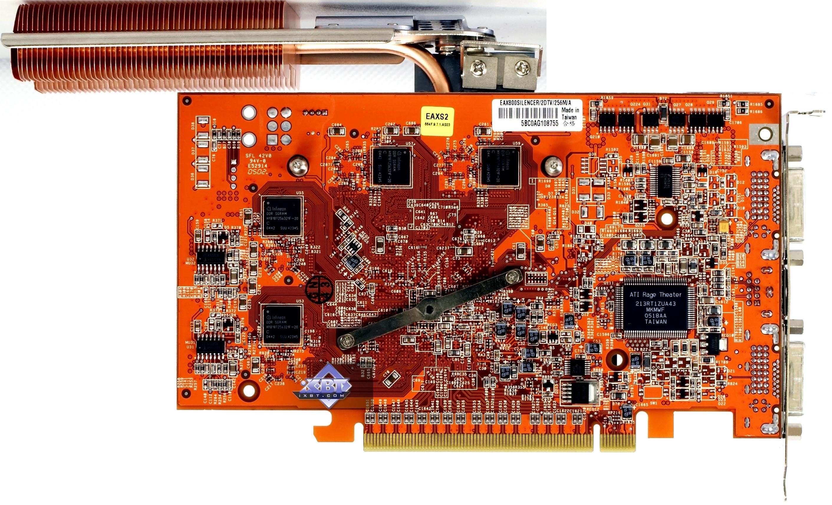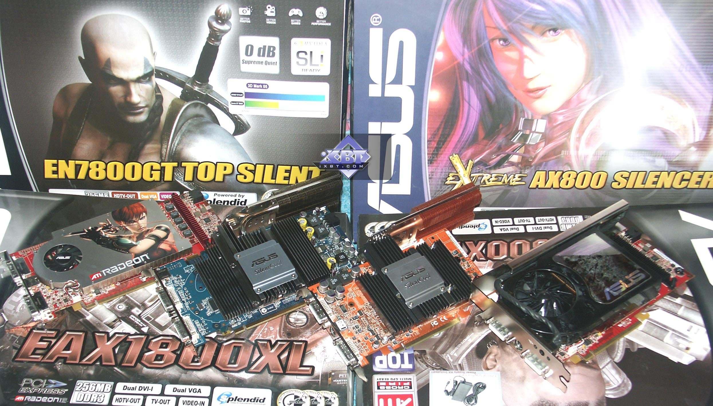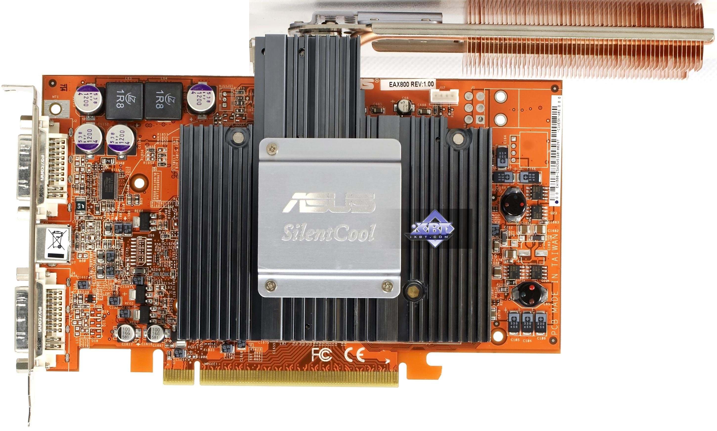 - ASUS Extreme AX800 Silencer 256MB PCI-E — неплохое изделие среднего класса, пассивная система охлаждения в данном случае очень хорошо подходит, при нормальной цене — лучший вариант среди X800 (плюс карта обладает VIVO). Качество в 2D отличное, нареканий на работу нет.