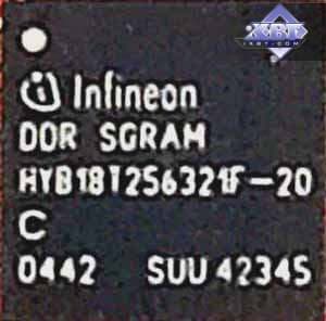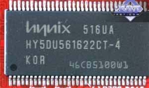 | Карта имеет 256 МБ памяти DDR SDRAM, размещенной в 8-ми микросхемах на лицевой и оборотной сторонах PCB. Микросхемы памяти Hynix (DDR). Время выборки у микросхем памяти 4.0ns, что соответствует частоте работы 250 (500) МГц. | ![]() |