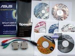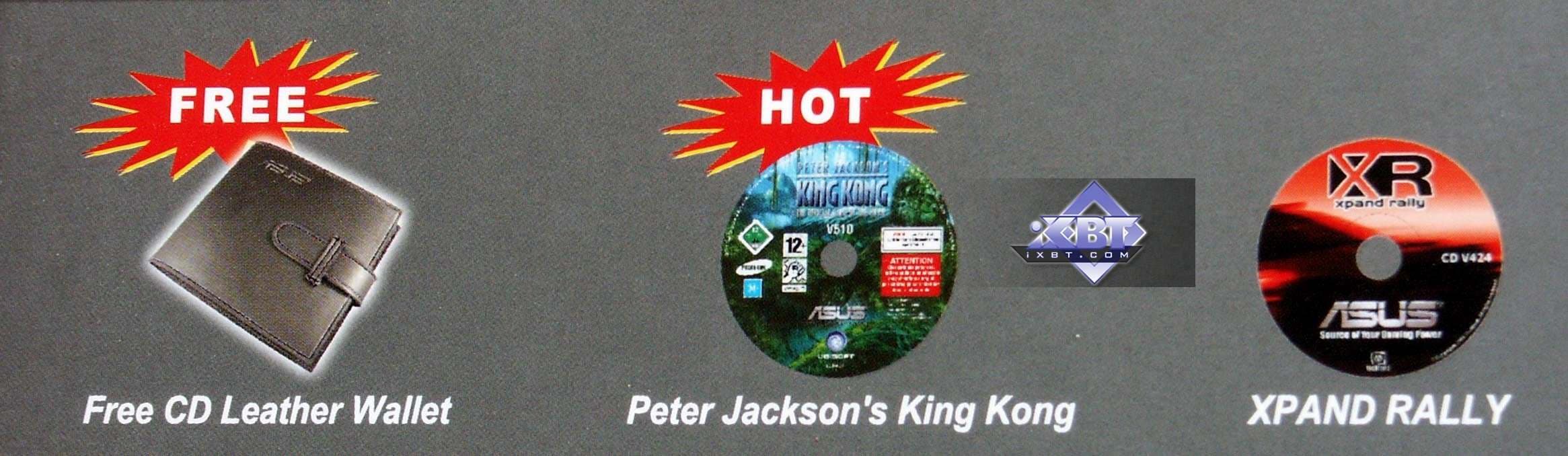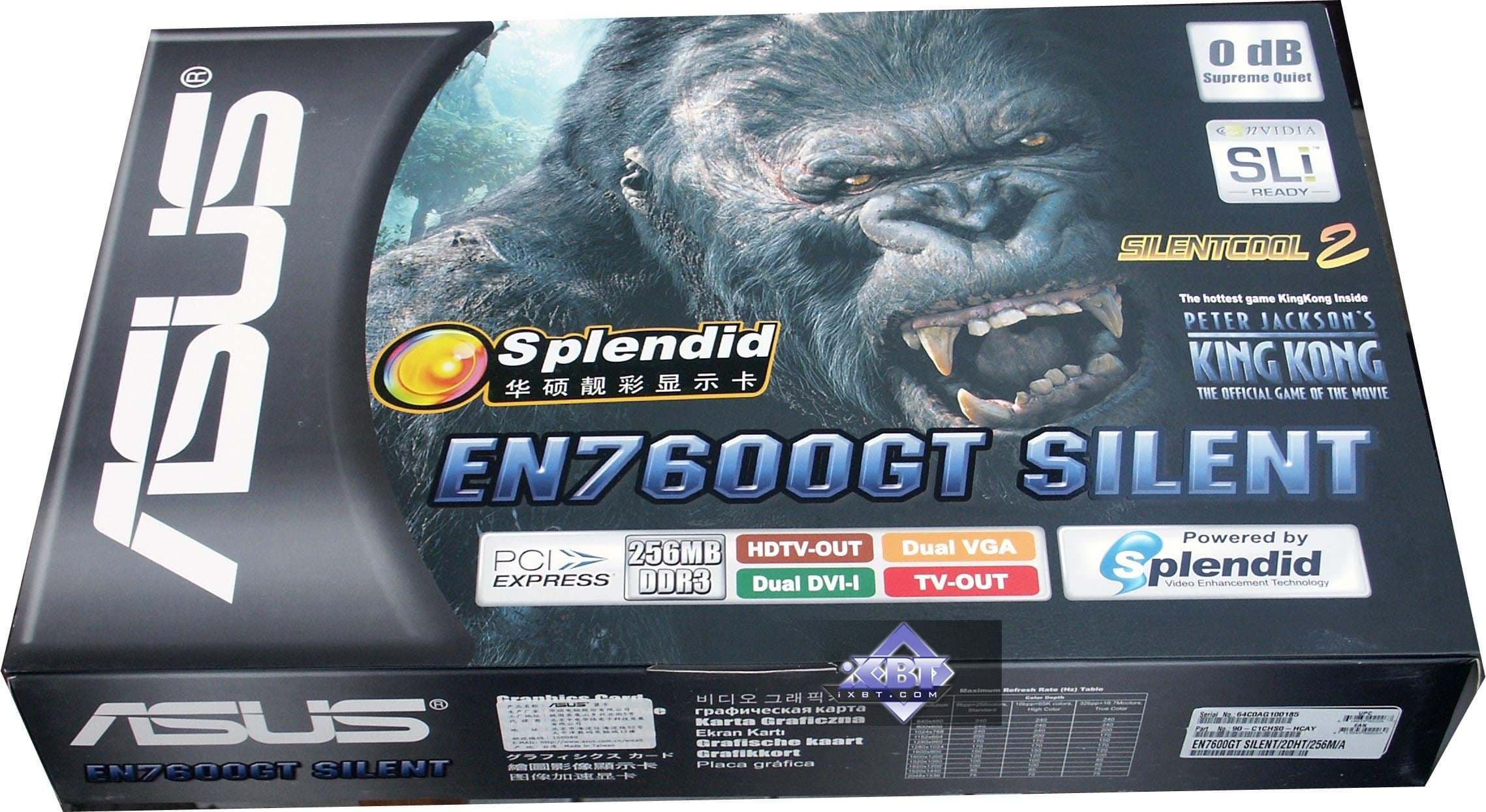 - ASUS EN7600GT Silent 256MB PCI-E — Очень интересное решение среднего класса (от 5400 рублей), имеющее бесшумный кулер. Да, по ряду параметров конкурент в лице X1800 GTO обходит 7600 GT (256битная шина, где-то в скоростях выше, наличие поддержки HDR+AA, более качественная анизотропия), но он, как правило, дороже (впрочем, приведенные внизу цены все расставят по своим местам). Акселератор отработал прекрасно, проблем не было, качество в 2D превосходное в 1600х1200 при 100 Гц. Дополнительно отмечу комплект поставки с бонусом.