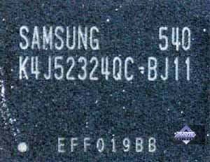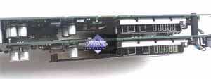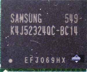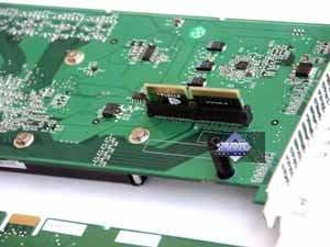 | Карта имеет 1024 МБ памяти GDDR3 SDRAM, размещенной в 8-ми микросхемах на лицевой стороне каждой из PCB (всего 16 микросхем). Микросхемы памяти Samsung (GDDR3). Время выборки у микросхем памяти 1.4ns, что соответствует частоте работы 700 (1400) МГц. | ![]() |
