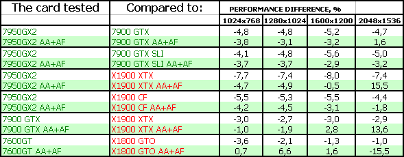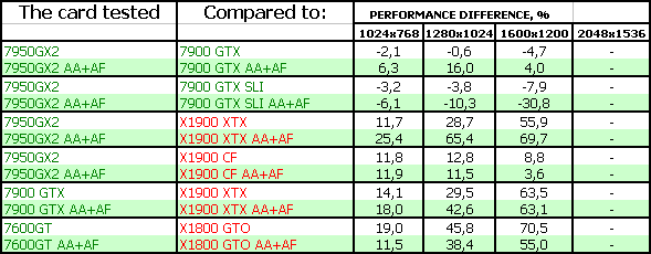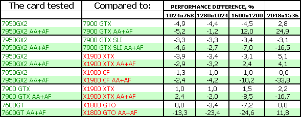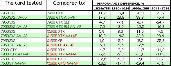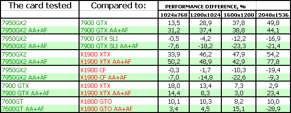 Так что, среди цельных отдельных ускорителей 7950 GX2, безусловно, король. Цена обещает быть на уровне 650 долларов США, но далее у нас всегда имеется постоянно обновляемая табличка с ценами, так что читатель всегда может узнать — сдержано обещание или нет.