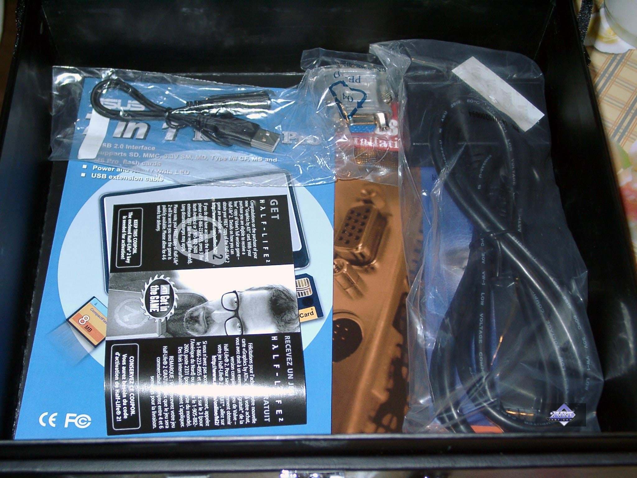 Короче говоря, когда человек увидел комплект, то, конечно, для него это было почти шоком. Хотя подобные особые поставки видеокарт вместе с еще какими-либо бонусами уже нам встречались, а также в особых упаковках. Однако все равно кожаный кейс плюс кожаный бокс для CD, USB 2.0 Card Reader 7 in 1, все это конечно говорит о том, что перед нами действительно нечто из High-End. Забегая вперед, отмечу, что сама видеокарта ничего нового собой не представляет, мы уже ранее рассматривали такую. Кстати, упомянутый обзор есть среди материалов, посвященных R300-360