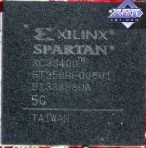 Последний весьма сильно греется и потому соединяется с кулером видеокарты с помощью тягучей массы в качестве термоинтерфейса. Представляет собой процессор от Xilinx. Он нужен для объединения (комбинирования) сигналов, если говорить на понятном языке. Имеет свою память, которая программируется. Именно для таких целей у так называемой мастер карты и существует разъем в верхней части на оборотной стороне, через который с помощью специального оборудования и программируется работа данного процессора.