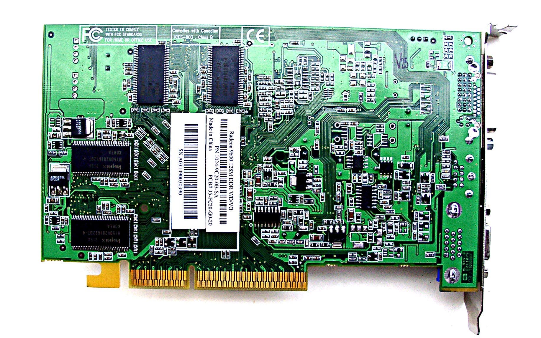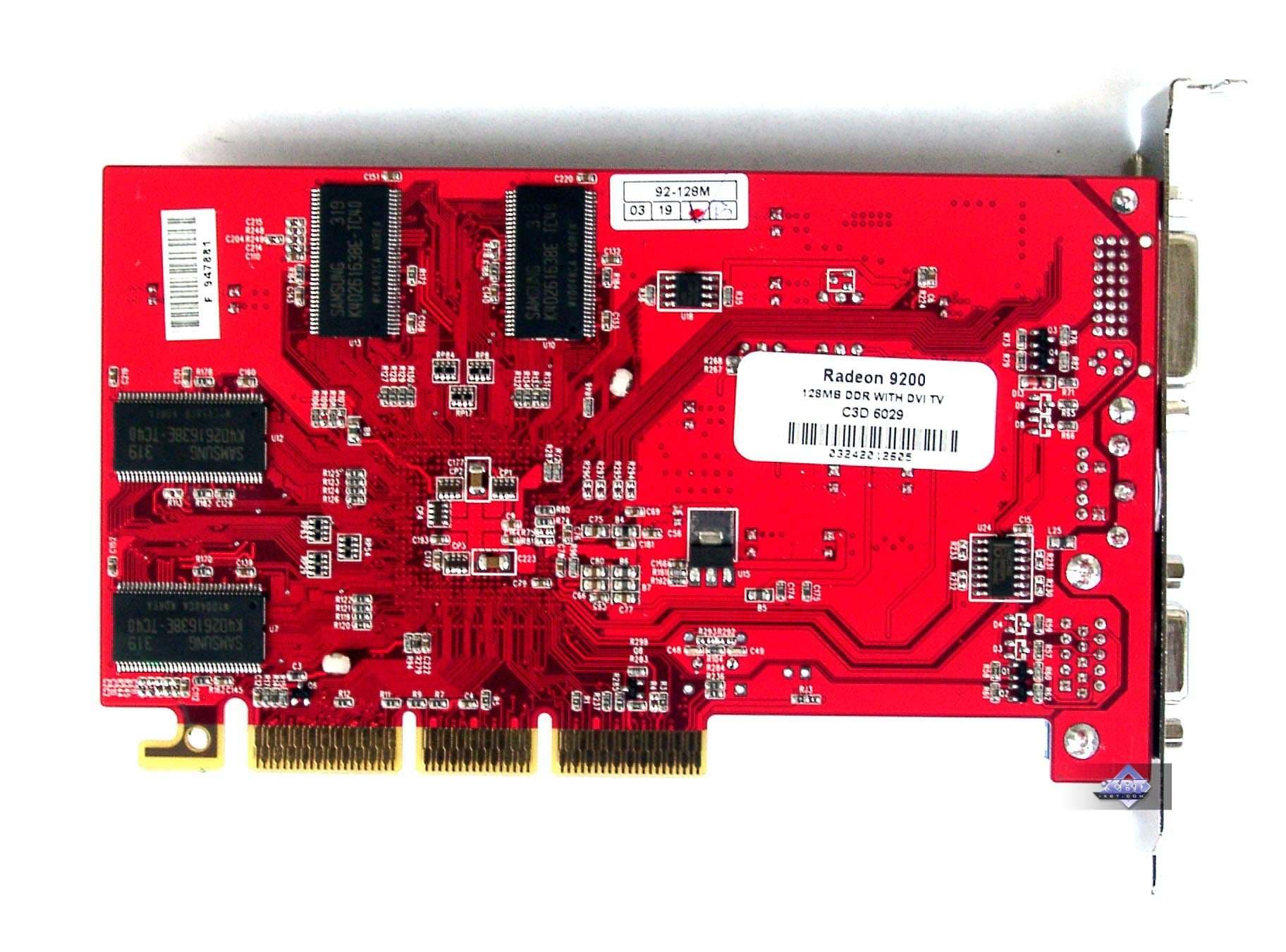 | Микросхемы памяти Samsung. Время выборки у микросхем памяти 4 ns, что соответствует частоте работы 250 (500) МГц, память же работает на частоте 200 (400) МГц. Частота работы GPU — 325 MHz у RADEON 9600 и 250 МГц у RADEON 9200. | ![]() |
