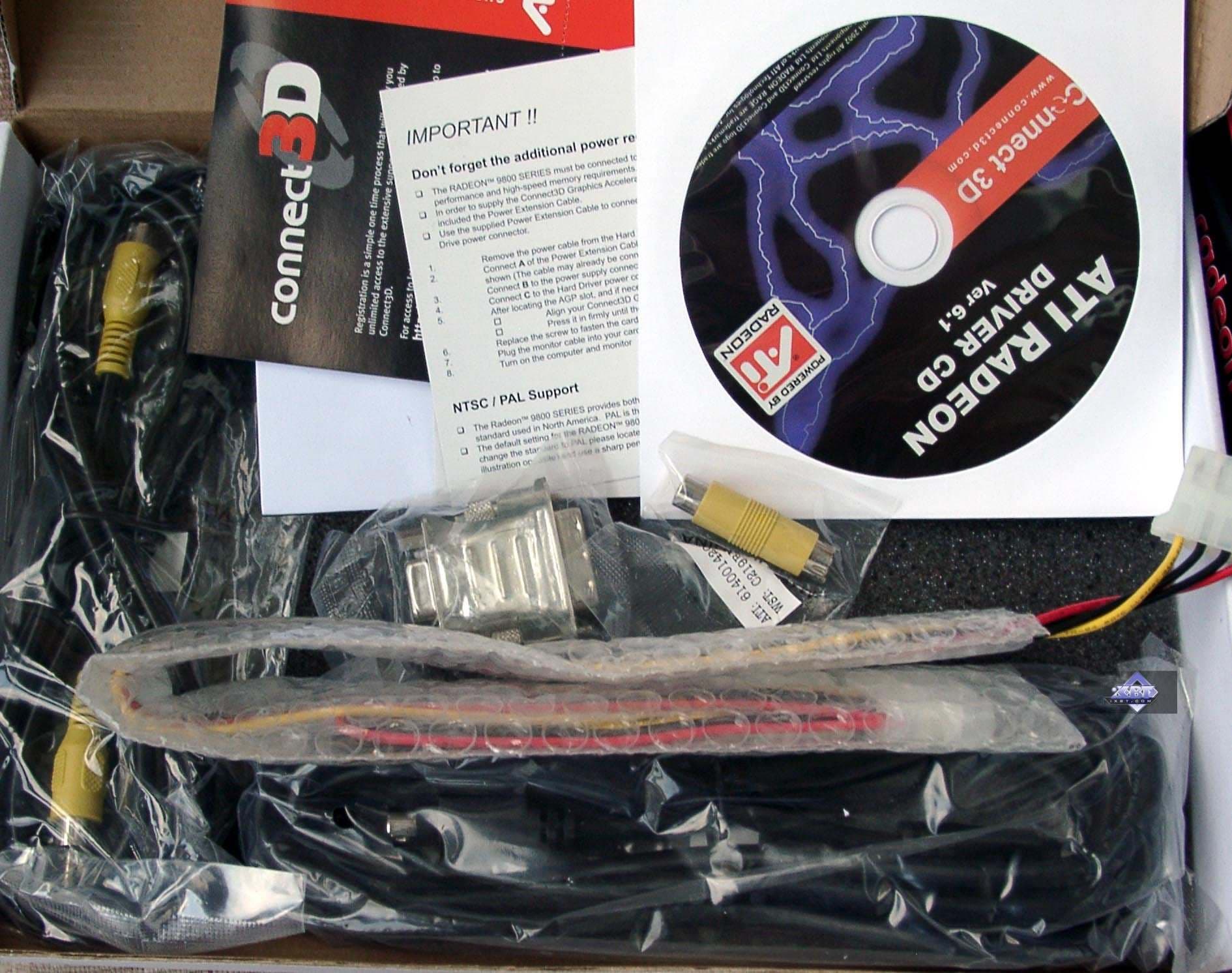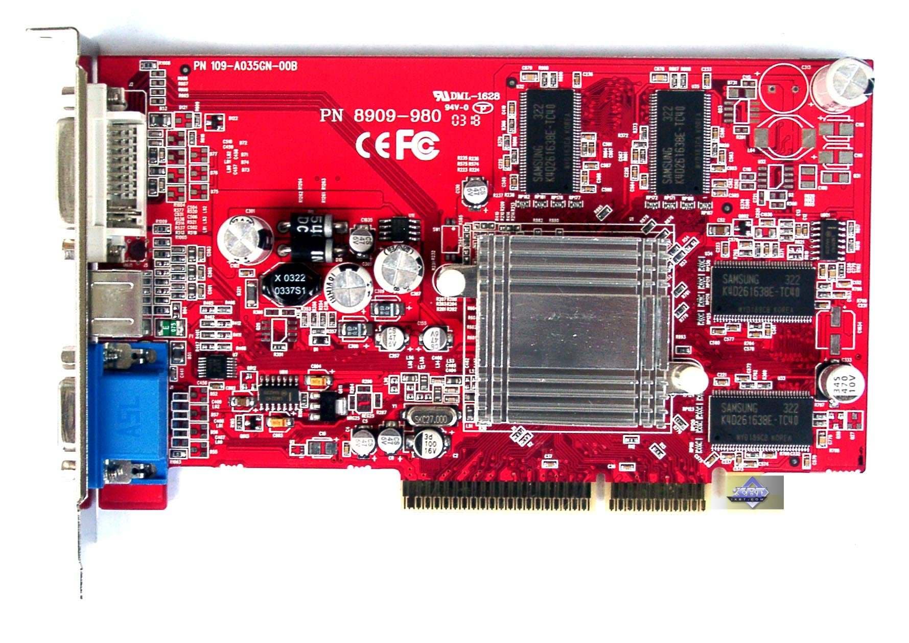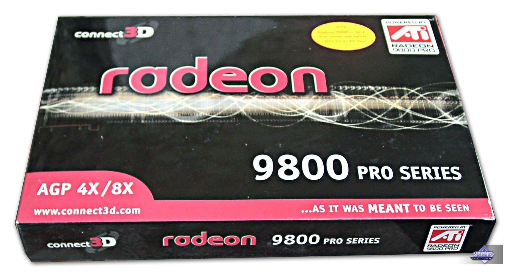 | Все карты имеют интерфейс AGP x8/x4/x2, 128 МБ памяти DDR SDRAM (кроме Connect3D RADEON 9800 PRO 256MB), размещенной в 8-ми микросхемах на лицевой и оборотной сторонах PCB (у Connect3D RADEON 9800 PRO 256MB — 16 микросхем). | |