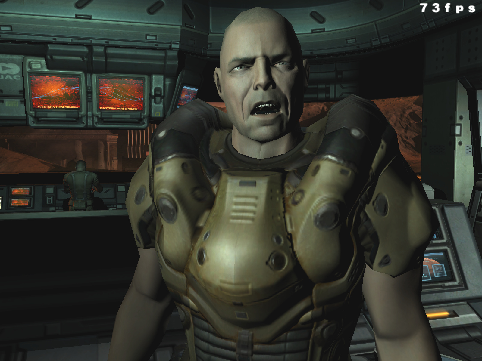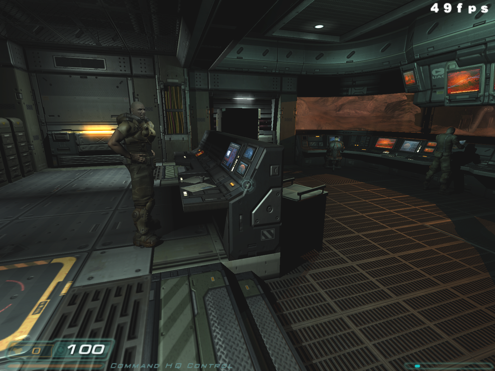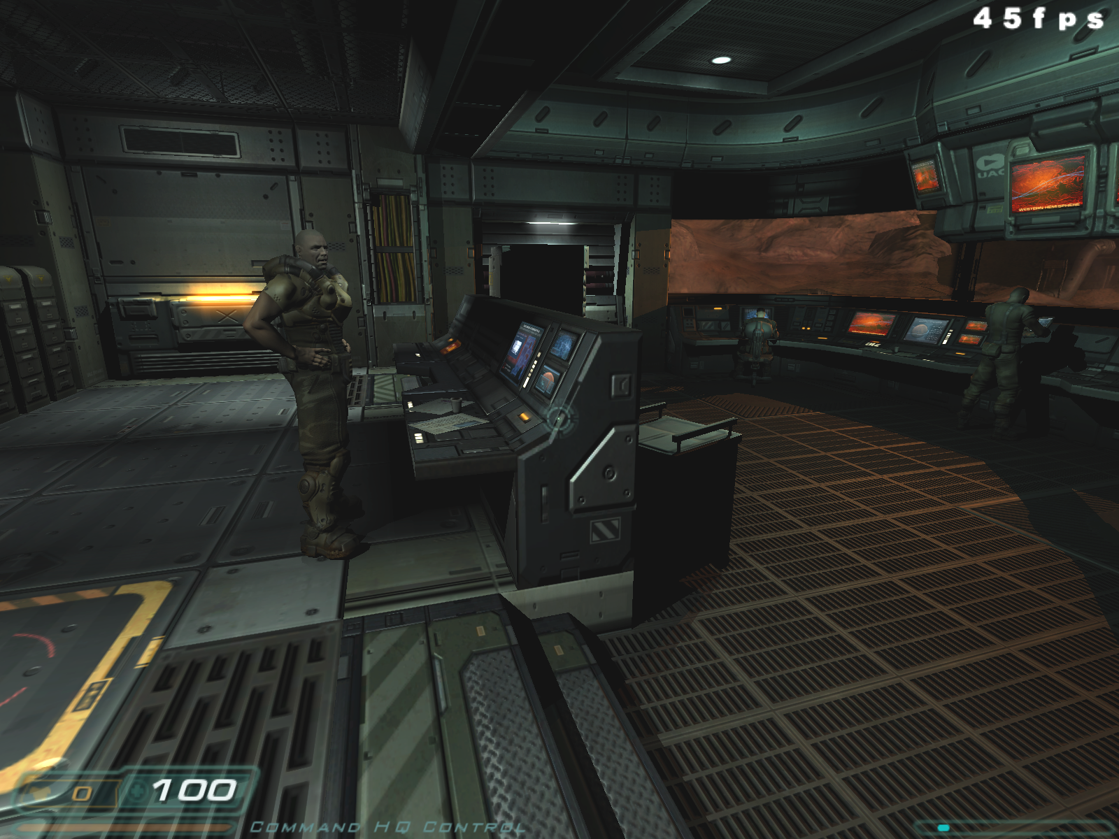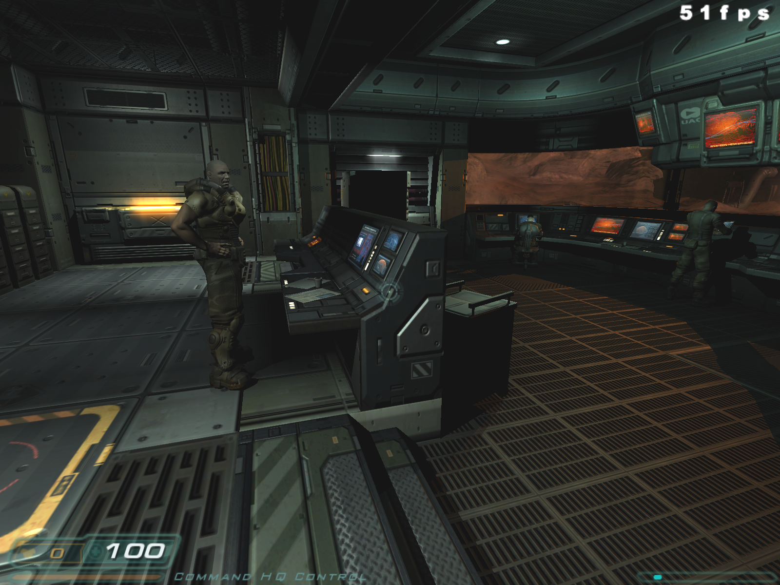 Можно сразу сказать, что в 90% случаев вы вообще не увидите никакой разницы, ибо DOOM III — это беганье в темных, страшных закоулках, которые иногда освещаются лампами, а также адским огнем, которого подчас предостаточно для полного представления логова дьявола в нашем понимании.