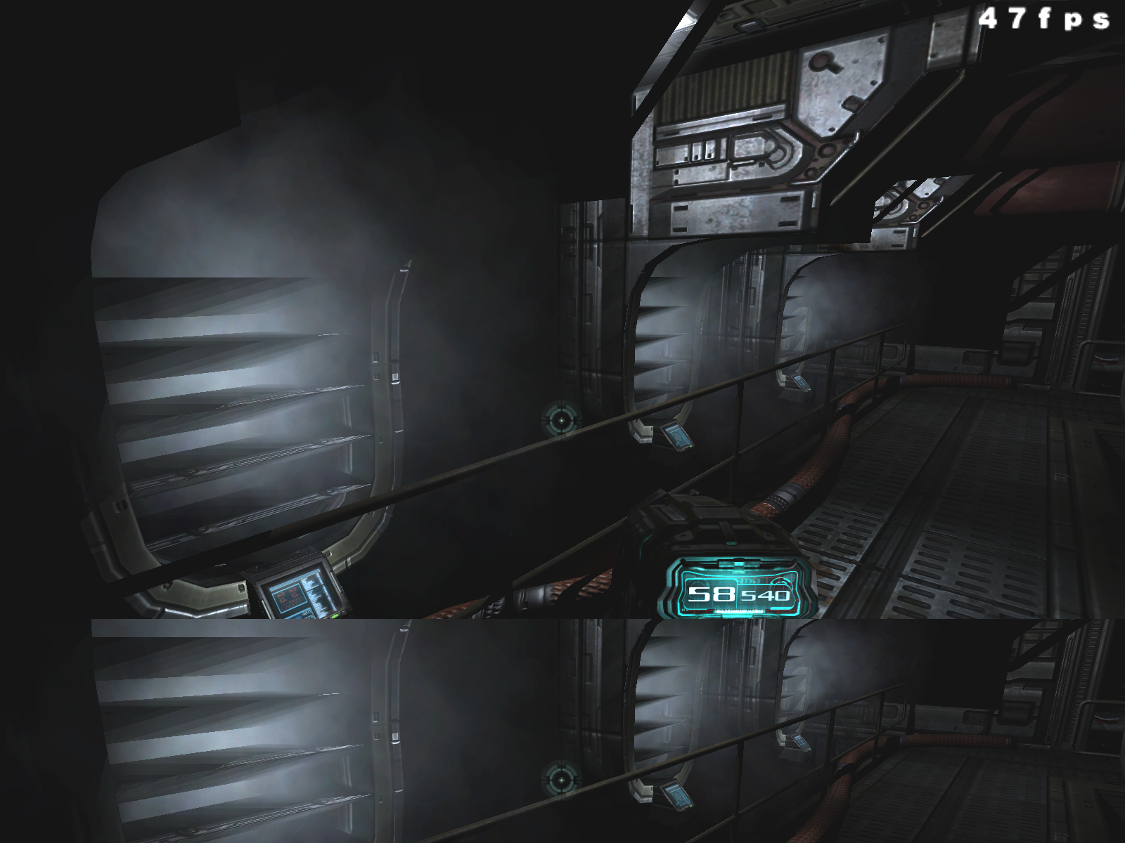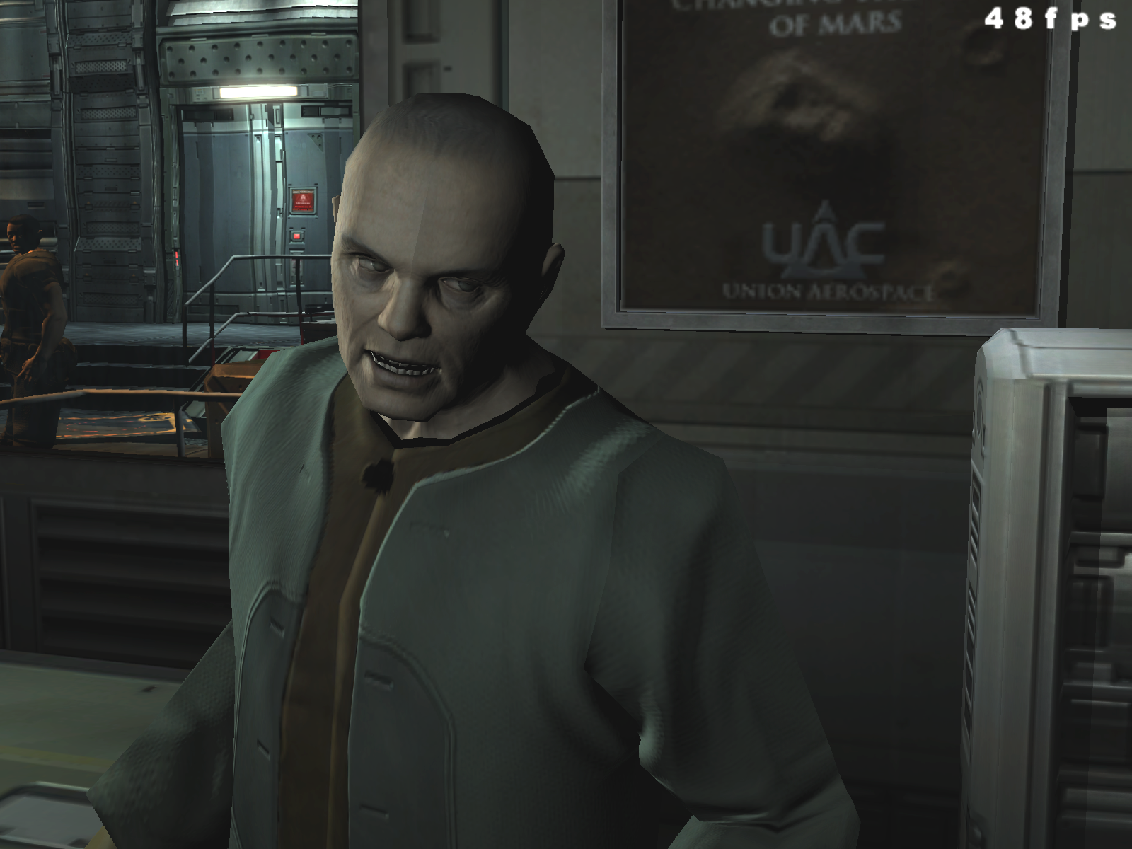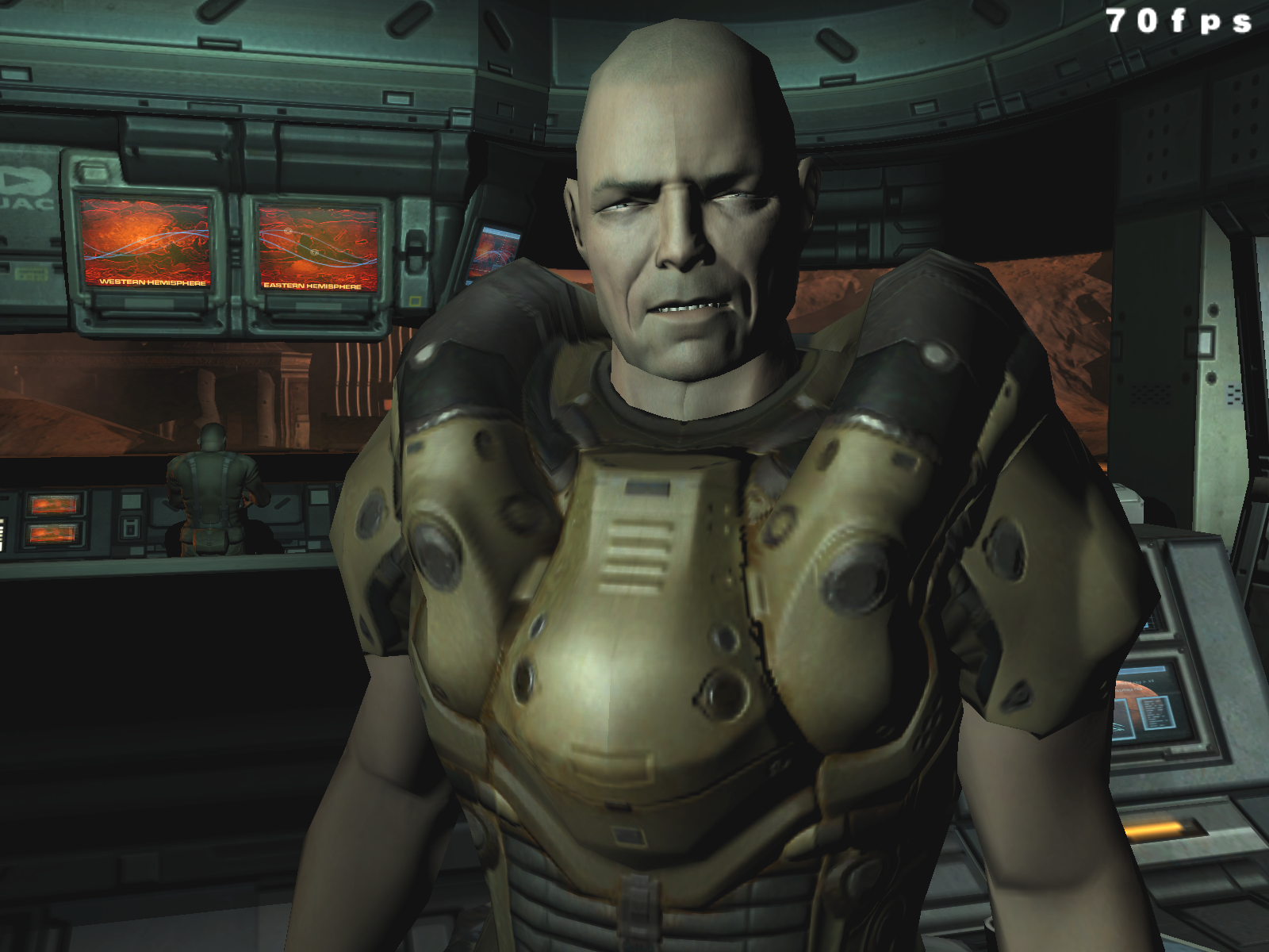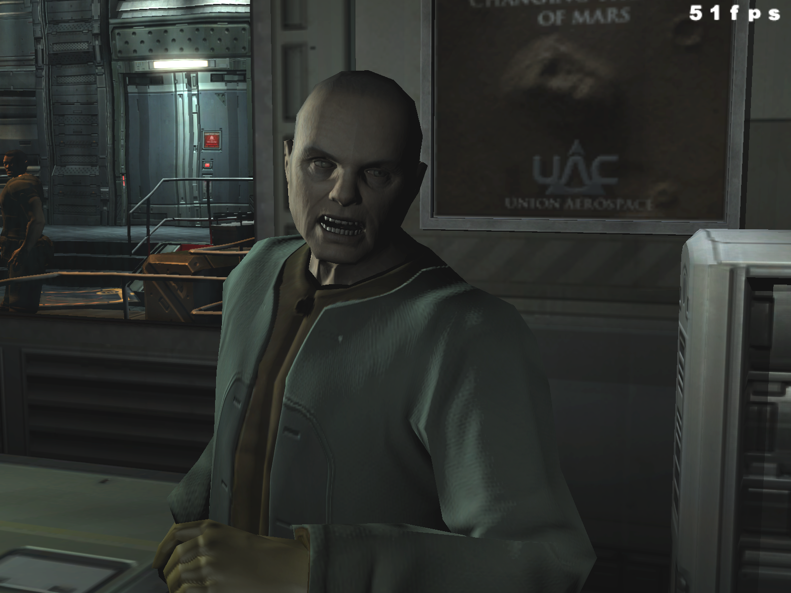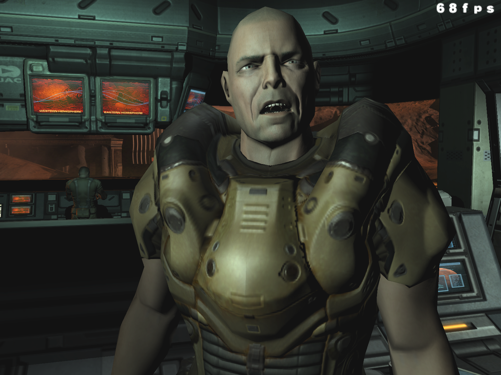 Можно сразу сказать, что в 90% случаев вы вообще не увидите никакой разницы, ибо DOOM III — это беганье в темных, страшных закоулках, которые иногда освещаются лампами, а также адским огнем, которого подчас предостаточно для полного представления логова дьявола в нашем понимании.