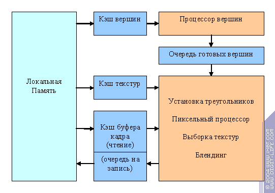 Cперва, чтобы понять, КАК все работает, обратимся к более удобной для восприятия логической структуре ускорителя (графический конвейер):