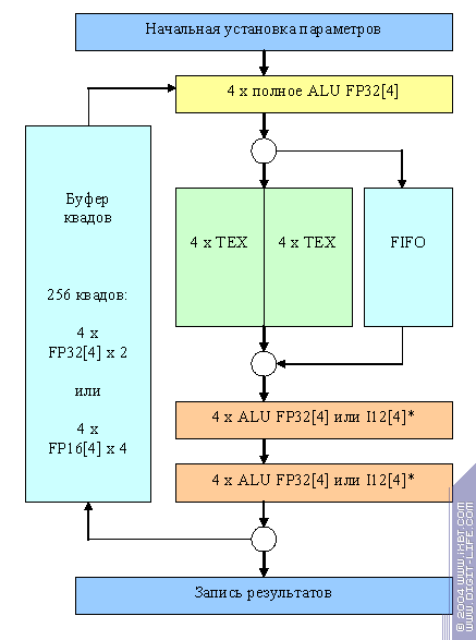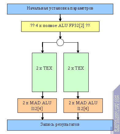 Самое главное отличие — процессор фрагментов действительно похож на процессор. А не на один большой цикл : как в случае NV3X. Процессор выполняет