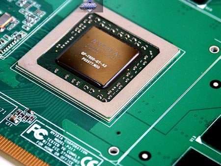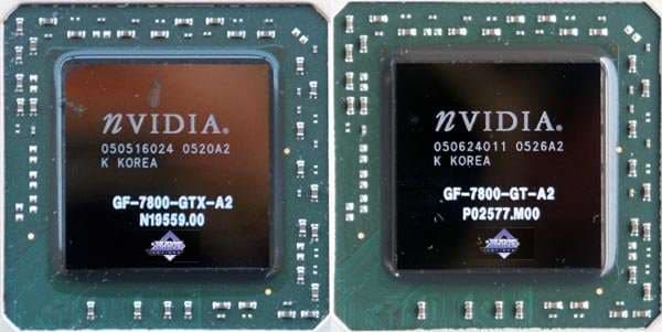 Прекрасно видно, что чипы абсолютно идентичны с визуальной точки зрения. Никаких мостиков и различий на подложке GPU не обнаружено. Следовательно, отключение четырех пиксельных и одного вершинного конвейера было сделано или внутри самого кристалла, или с помощью программируемых регистров, или через BIOS. Два последних способа дают шанс на разблокирование. Первый — можно проститься с мечтой о переделке GT в GTX. К прискорбию оверклокеров, выяснится, что именно на первый способ и вышли разработчики из NVIDIA. Но об этом ниже.