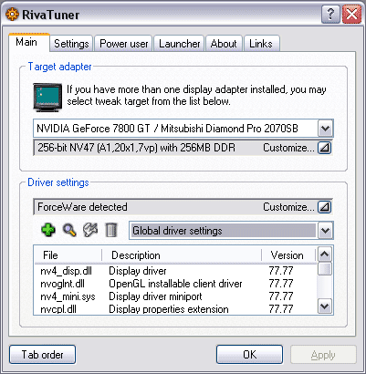 Итак, перед нами GeForce 7800 GT. Как видите, его легко распознала утилита RivaTuner (автор А.Николайчук AKA Unwinder), и показала правильно и число конвейеров, и частоты. Да и мониторинг работает (как выше было видно).