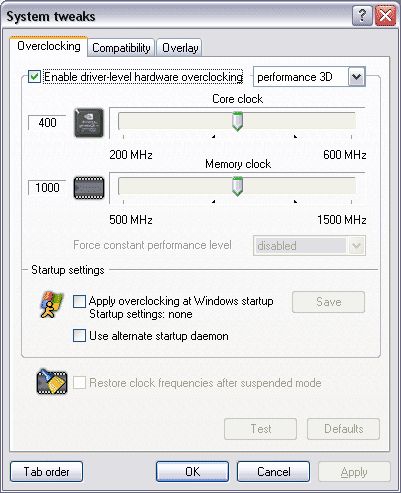 Разумеется, я попробовал разблокировать 1 квад и 1 вершинный конвейер, однако, как я уже выше отмечал, попытка неудачная. Хоть регистр и перепрограммируется, данное число конвейеров зашито намертво в самом ядре. NVIDIA избавилась от «граблей», на которые наступала со времен NV4x. Еще во времена более поздних NV40 появилась информация о том, что разблокировки у 6800/6800LE уже стали невозможными (есть вероятность, что на эти карты ставят уже NV48 — производства TSMC по 0.11 мкм, где аппаратно прошивают числа конвейеров еще на стадии тестирования кристалла или даже раньше). Да и NV41/NV42, что идут на 6800LE (8 конвейеров) не разблокируются более (12 конвейеров). Так что, для оверклокеров и желавших купить дешевле и легко получить бесплатно мощь более дорогих карт — настают неприятные времена.