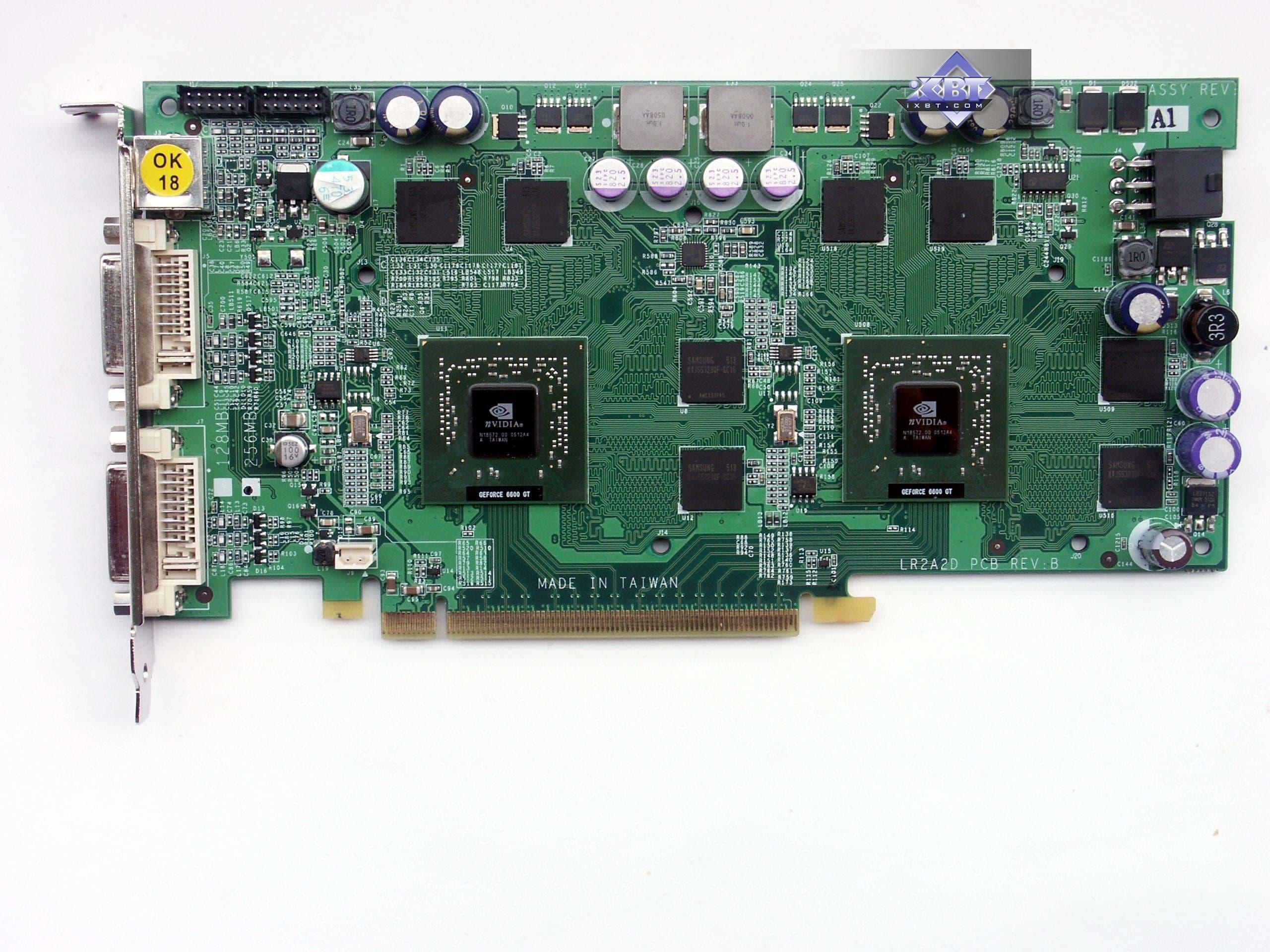 Наряду с 7800 GT в поле нашего зрения попал и другой продукт Leadtek. Многие читатели наверняка помнят попытку Gigabyte и ASUSTeK выпустить одиночную карту с двумя GPU, объединенными в работе режимом SLI. Прежде всего, это касалось GeForce 6600 GT, поскольку это сделать проще (все же и шина 128бит у отдельной карты на базе этого процессора, и всего по 128 мег стандартно имели такие платы). Уже много позже были попытки выпуска сдвоенных 6800 GT/Ultra на одной PCB.