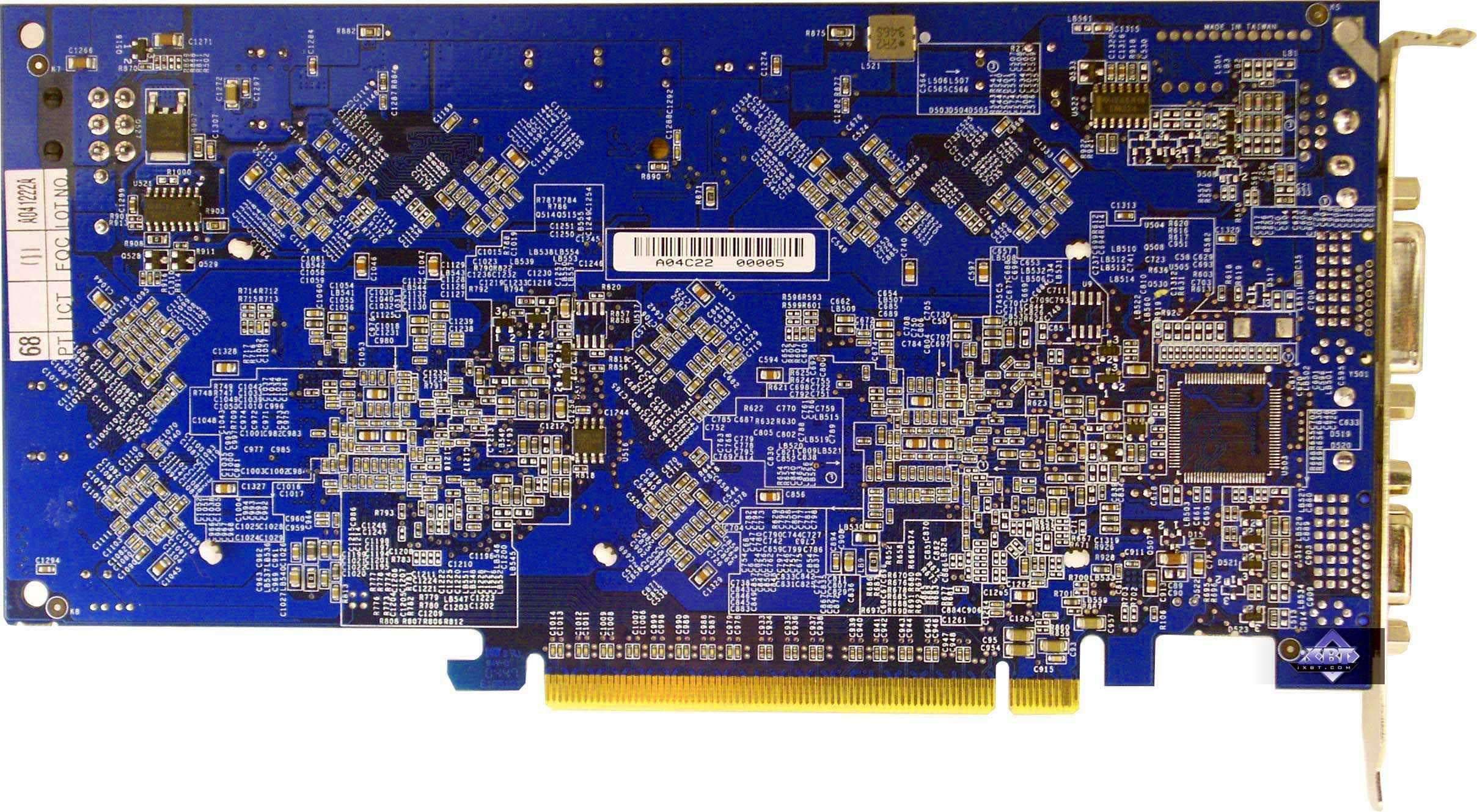 | Карта имеет 256 МБ памяти GDDR3 SDRAM, размещенной в 8-ми микросхемах на лицевой стороне PCB. Микросхемы памяти Samsung. Время выборки у микросхем памяти 1.6ns, что соответствует частоте работы 625 (1250) МГц. | ![]() |