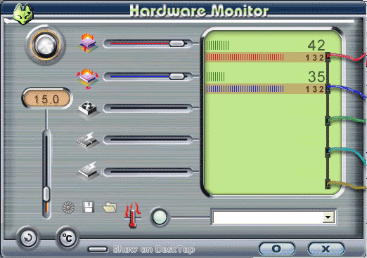 Кроме работы непосредственно с видеокартой, в состав WinFox входит также модуль сервиса, показывающий загрузку памяти, видеопамяти и CPU, а также сведения о драйверах, мониторе и т.п.