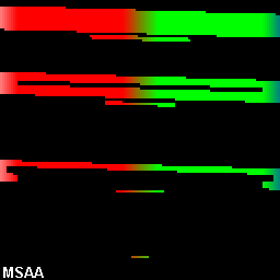 Чтобы ответить на остальные вопросы, рассмотрим набор специальных тестовых изображений. Все изображения были сняты в режиме антиалиасинга 4x и для удобства увеличены в 2 раза. Как известно, начиная с NV40, в режиме 4x все четыре сэмпла получены в режиме мультисэмплинга на основе повернутой решетки (rotated grid MSAA).