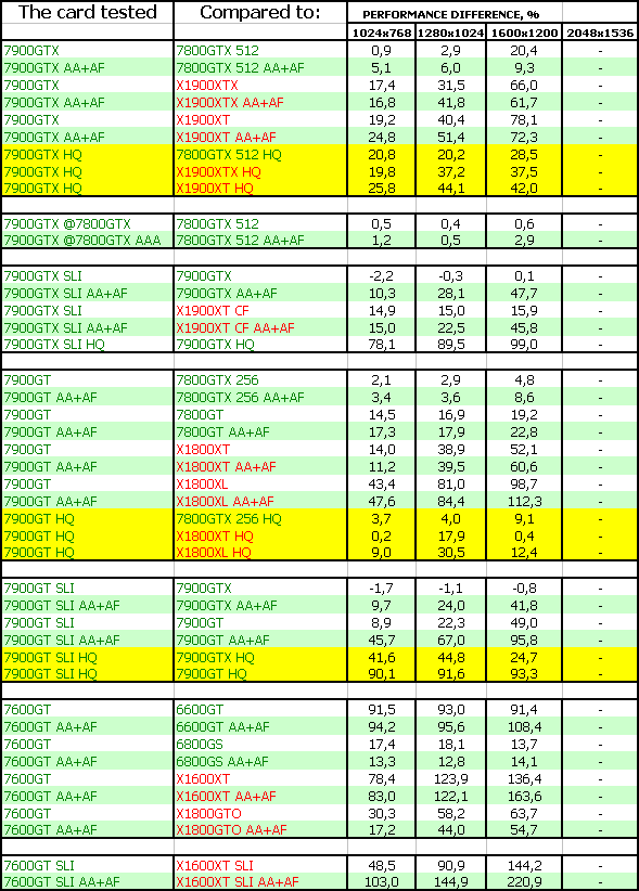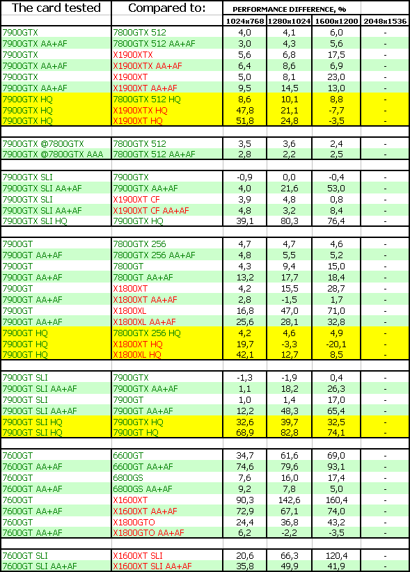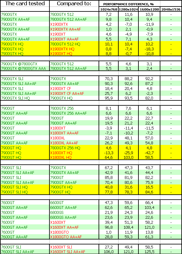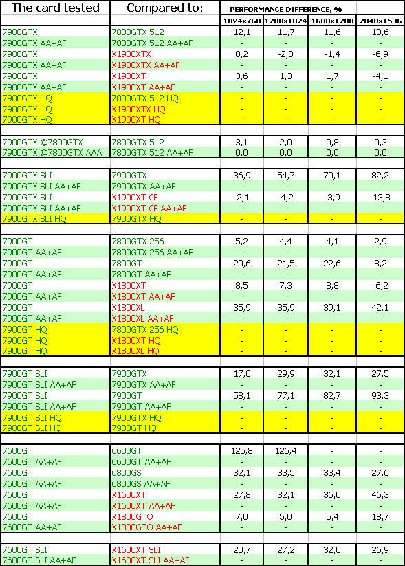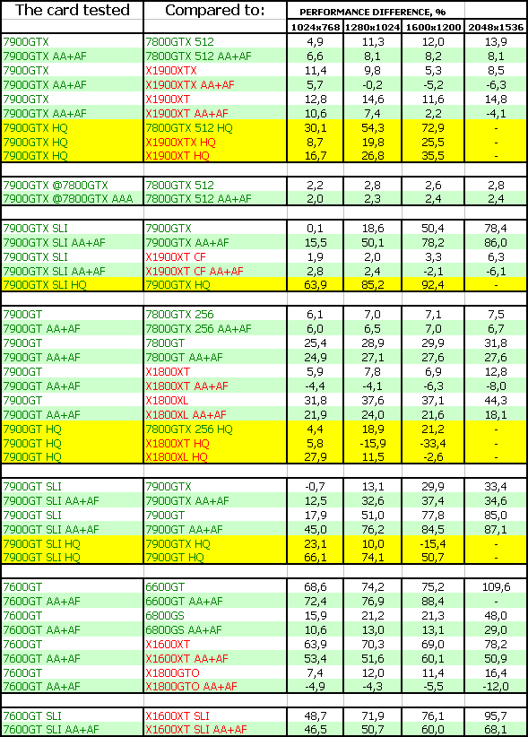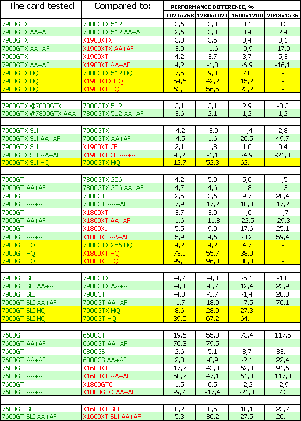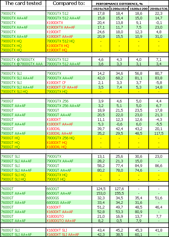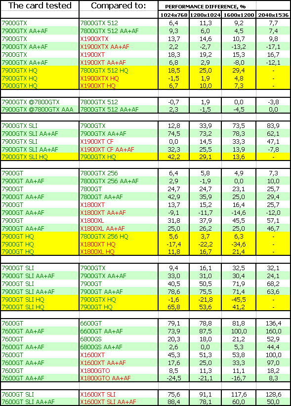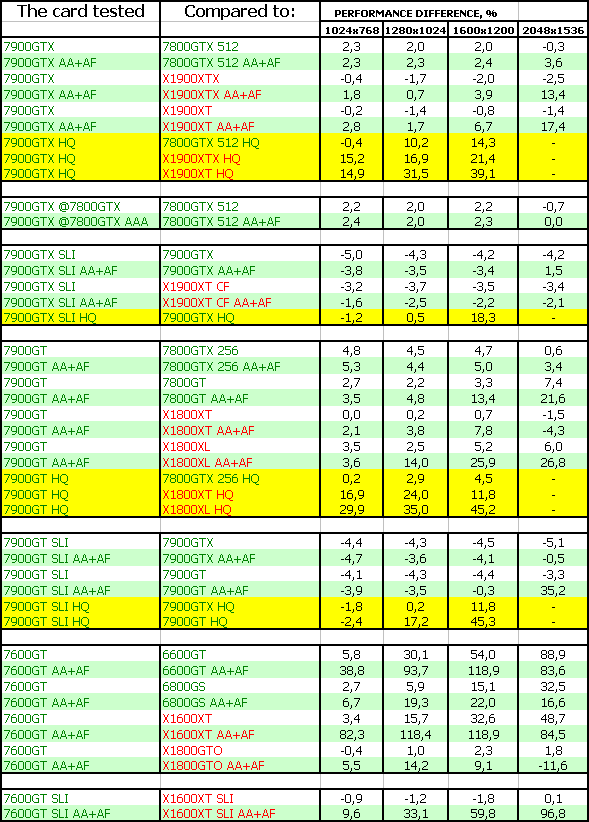 Такая же ситуация и у 7900 GT. И еще лучше у 7600 GT. Все три новинки бесспорные лидеры.