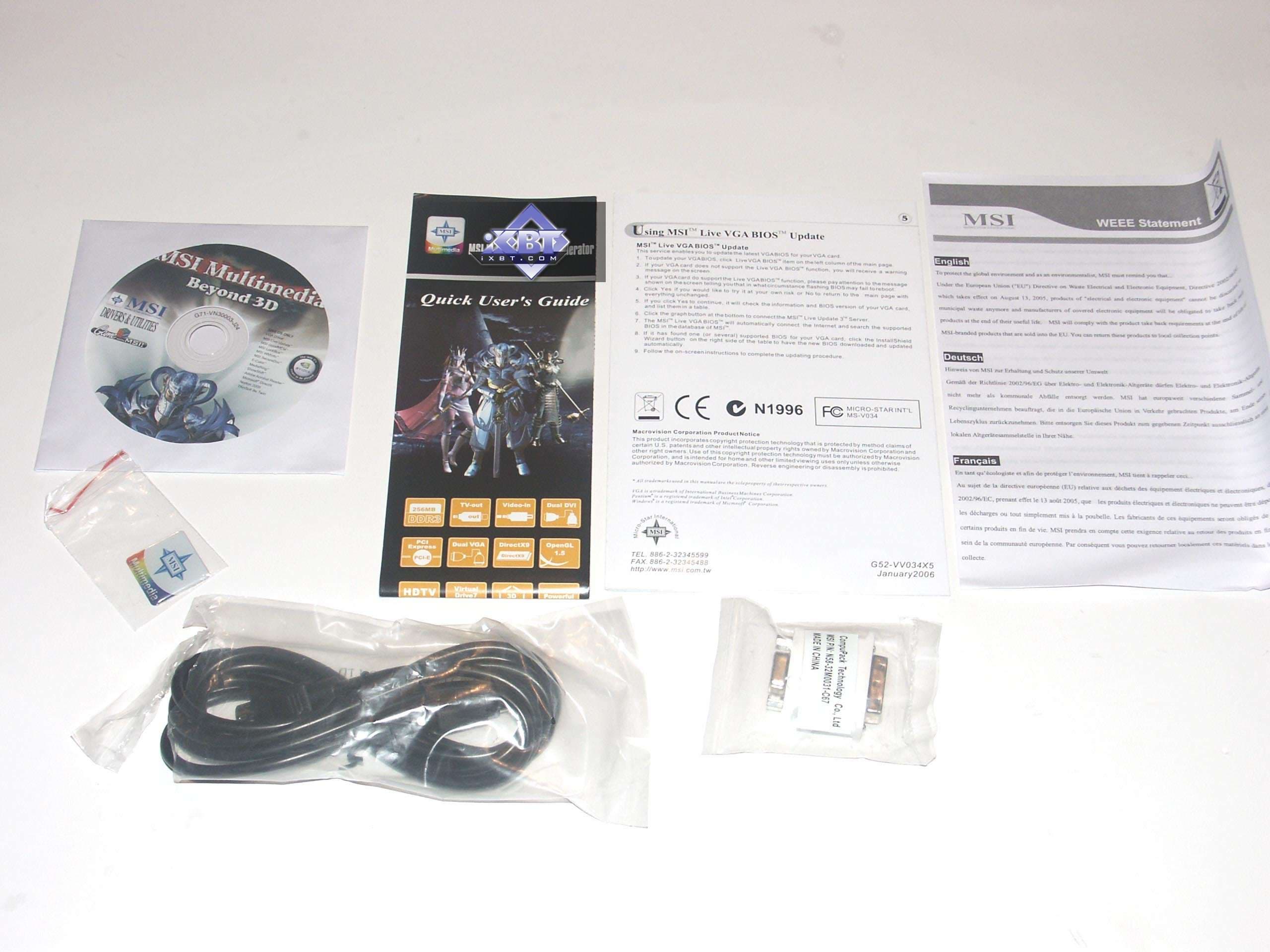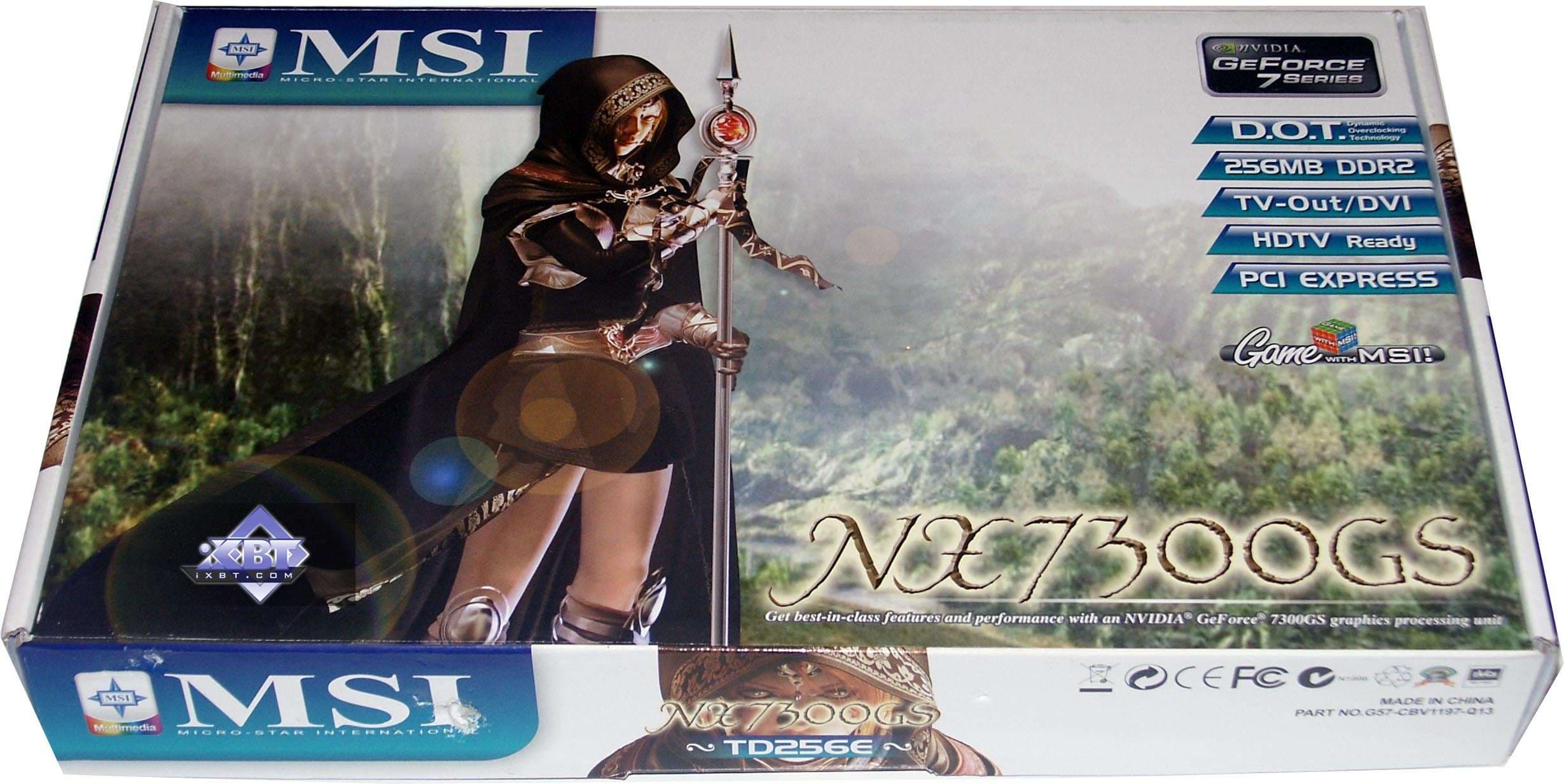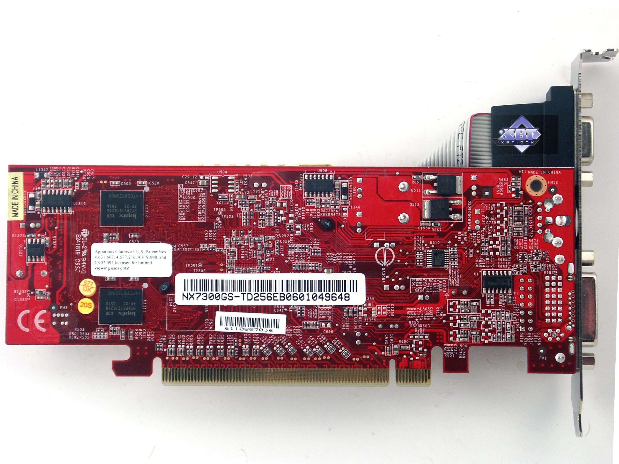 - MSI NX7300GS GeForce 7300 GS 256MB PCI-E — эта карта будет интересна тем, у кого маленький корпус, поскольку размеры ускорителя весьма небольшие. К сожалению, в комплекте поставки нет брэкета для Low-Profile SLIM корпусов. Вместе с этим, частота работы памяти у карты повышена относительно номинала, пустяк, конечно, для таких акселераторов, но приятно. Комплект поставки скромный, поэтому просто интересное бюджетное решение. Качество в 2D — все нормально вплоть до 1600х1200, 75 Гц.