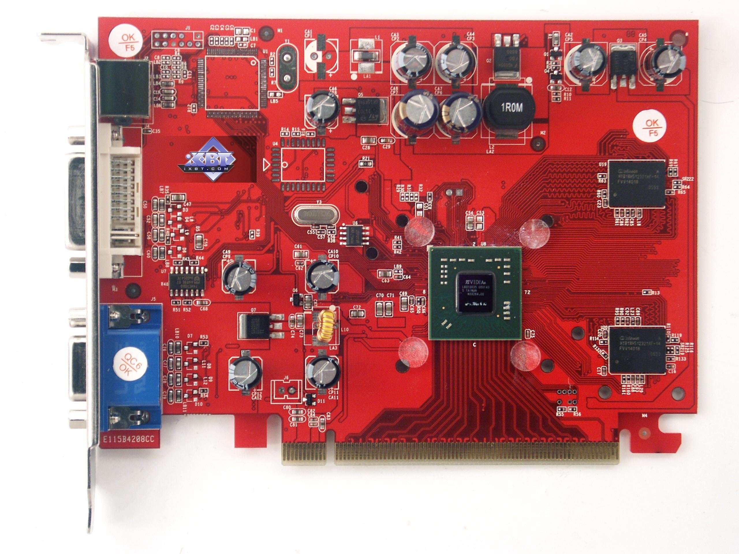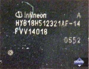 | Карта имеет 128 МБ памяти GDDR3 SDRAM, размещенной в 2-х микросхемах на лицевой стороне PCB. Микросхемы памяти Infineon (GDDR3). Время выборки у микросхем памяти 1.4ns, что соответствует частоте работы 700 (1400) МГц. | ![]() |