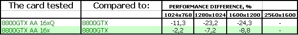 Таким образом, можно утверждать, что использование 16 coverage-сэмплов CSAA даёт на GeForce 8800 GTX примерно такое же падение производительности, какое даёт MSAA 4x.