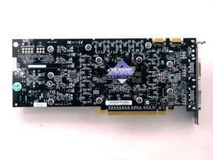 | Карта имеет 768 МБ памяти GDDR3 SDRAM, размещенной в 12-ти микросхемах на лицевой стороне PCB. Микросхемы памяти Samsung (GDDR3). Время выборки у микросхем памяти 1.1ns, что соответствует частоте работы 900 (1800) МГц. | ![]() |
